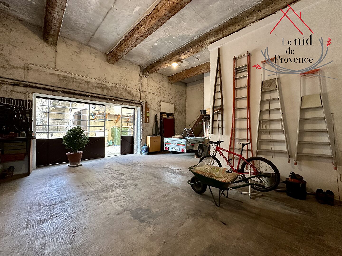 Grand garage, offrant de multiples possibilités