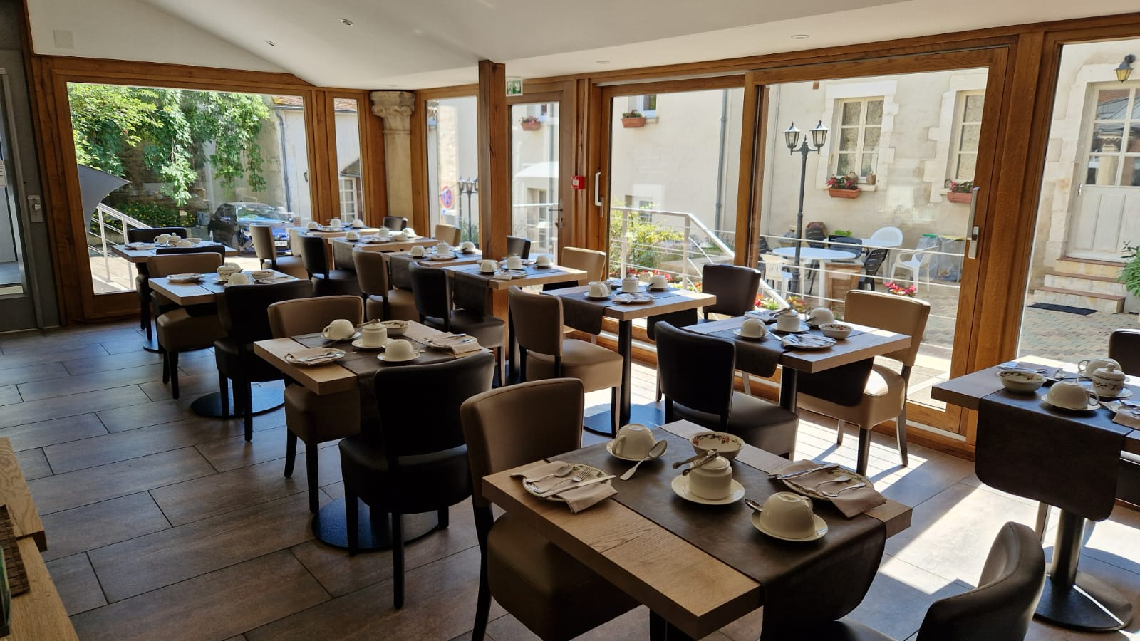 Il se compose d'un accueil spacieux, une salle petit déjeuner, une salle de restaurant (30 couverts), une salle intimiste (14 couverts), une salle de réception/banquet (70 couverts), une cuisine professionnellement très bien équipée, une salle pour séminaires. Côté hôtellerie; 15 chambres doubles climatisées (dont une chambre PMR), buanderie. Côté extérieurs; 7 places de parking dans la cour, jardinet, terrasse et grange.