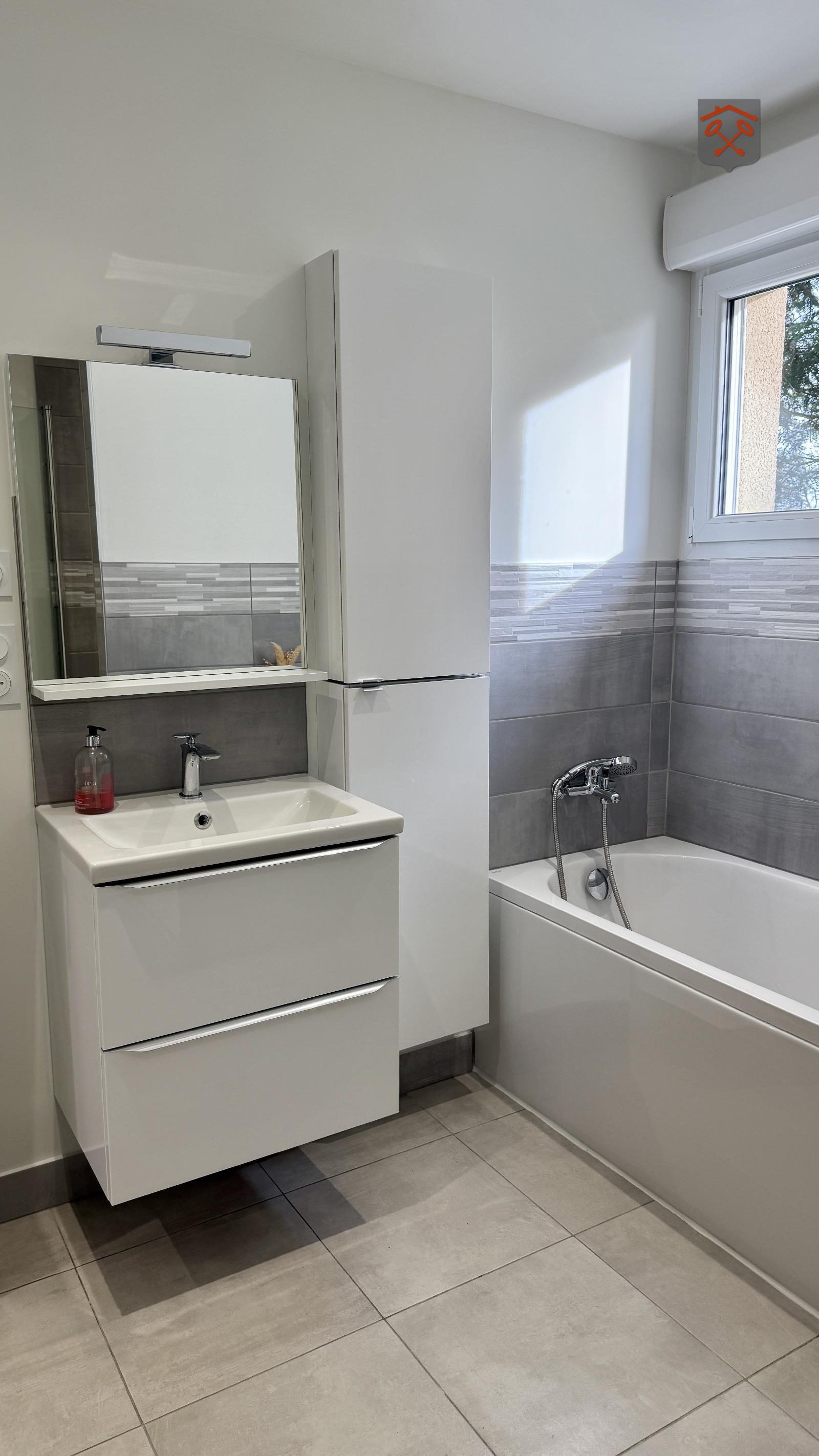 -Grande pièce de vie avec séjour/salon et cuisine aménagée et équipée, 3 chambres, salle de bains complète avec baignoire et douche, wc, buanderie