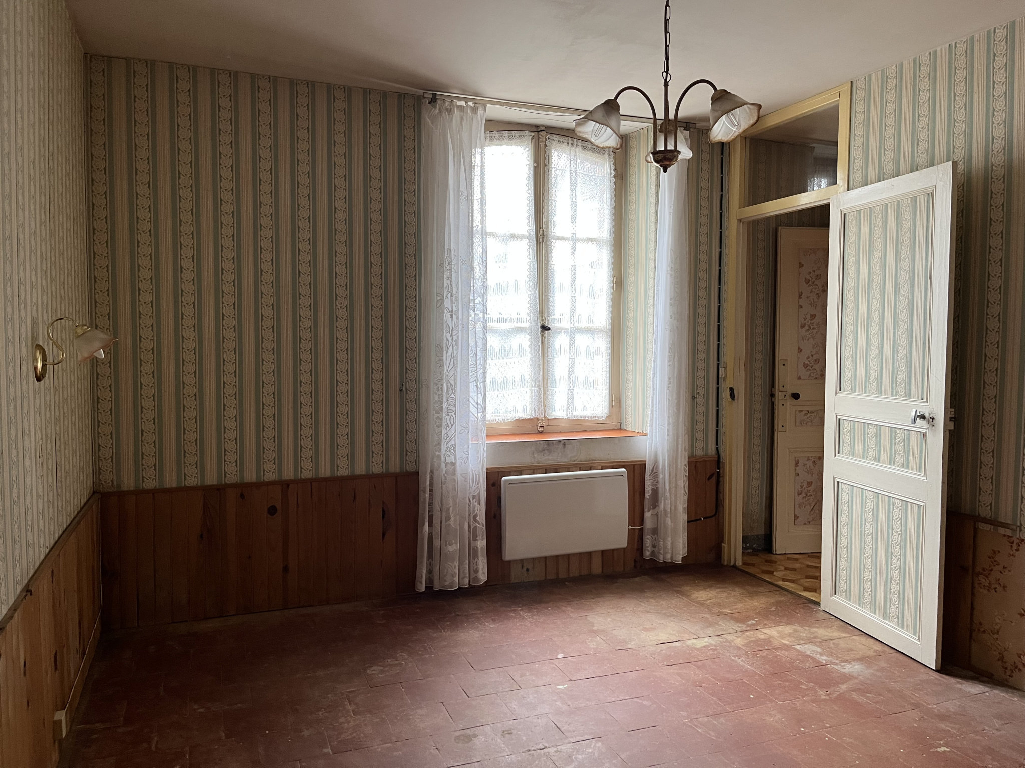 30mn LE MANS proche Bouloire & Connerré - dans petit village (écoles & commerces) Maison typique Coudrecelestine (brique et pierre) de plain-pied 3 pièces: salon séjour avec cheminée, grande cuisine, une chambre de 14m2, salle d'eau et WC. Grenier aménageable possible de réaliser 2 pièces. Cave voutée sous partie de la maison. Petit hangar-atelier. Terrasse et jardin avec vue dégagée sur la campagne et forêt. Petit passage couvert sur le coté, idéal pour accéder au jardin depuis la rue.
