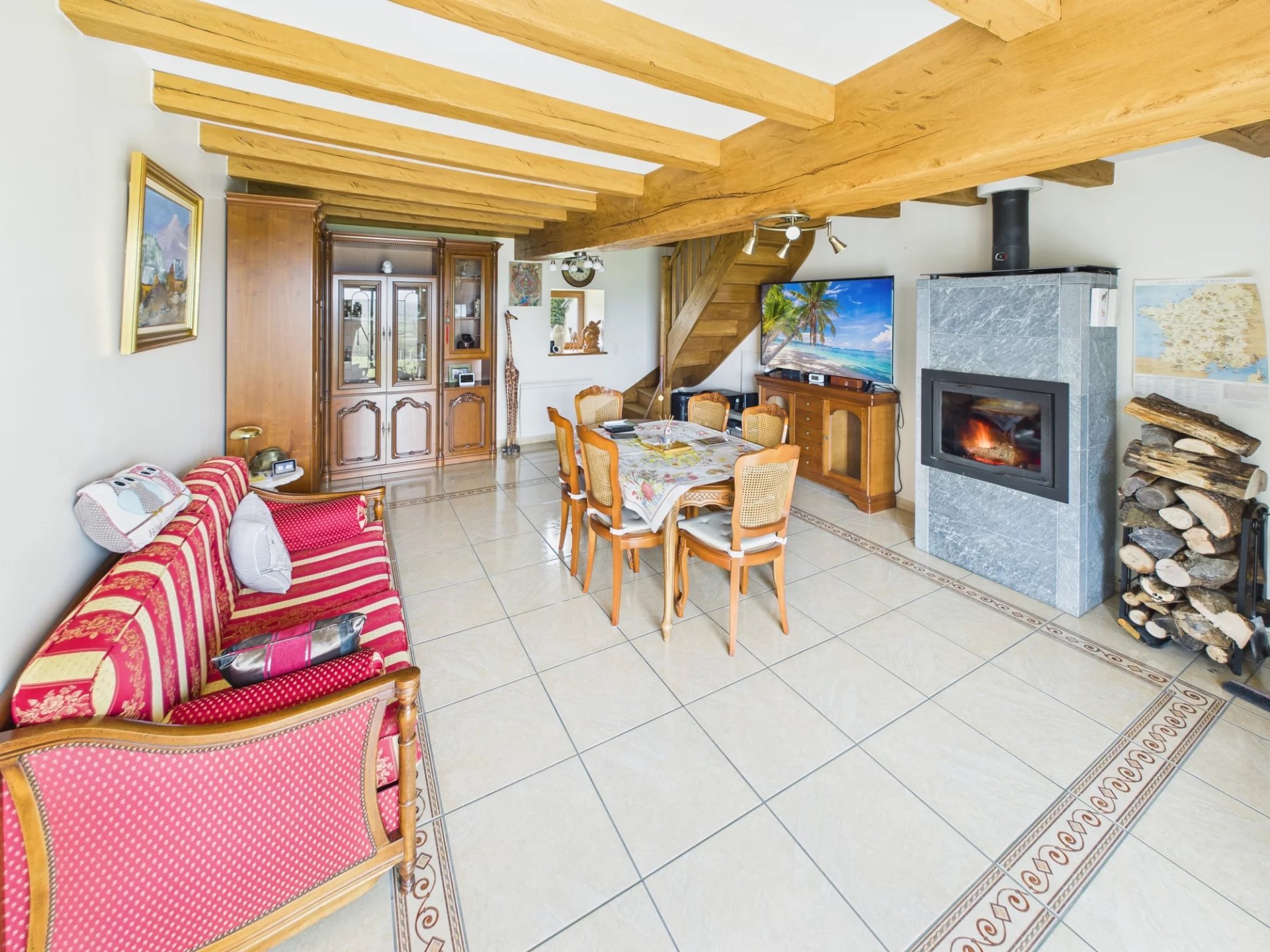 Au premier étage, un salon avec sa cheminée promet des moments chaleureux en famille. Ce niveau abrite également les premières chambres de la maison.