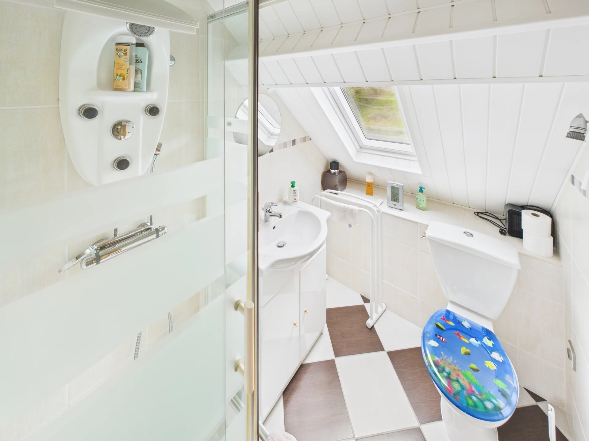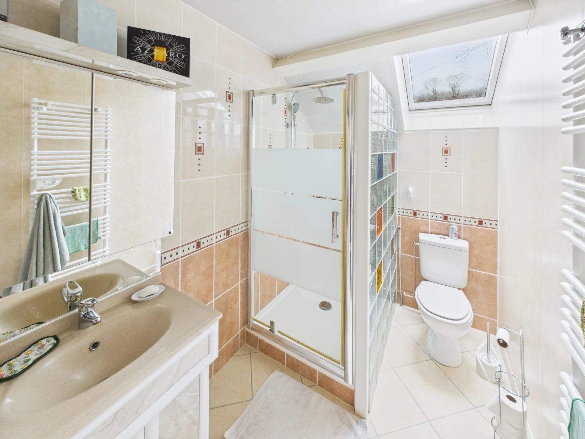 Le rez-de-chaussée se complète avec un WC et une salle de bain.