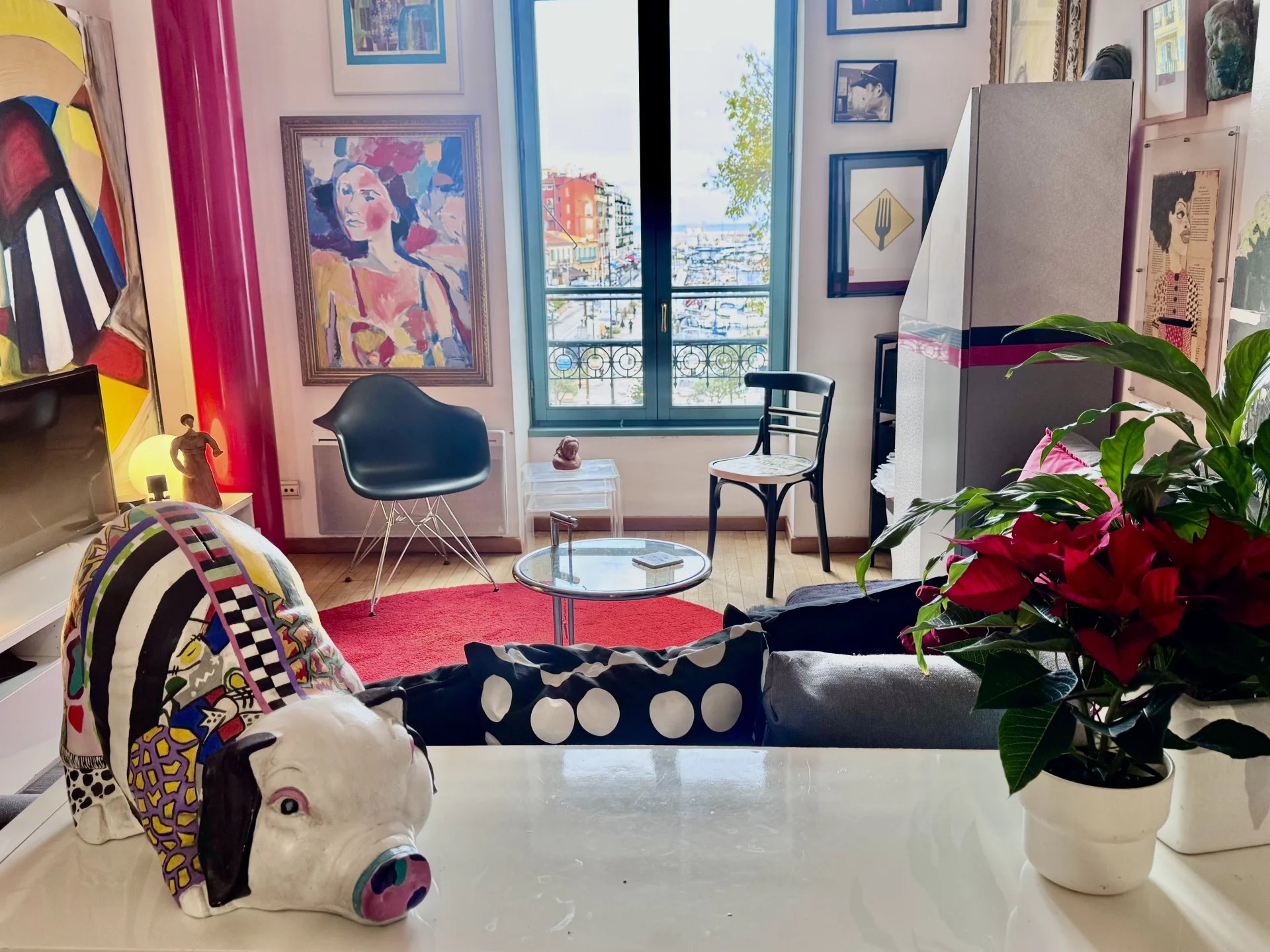 En très bon état, il offre deux atouts majeurs : une agréable vue mer et port côté séjour, ainsi qu’une jolie terrasse intimiste côté chambre, donnant sur le jardin intérieur de la résidence.