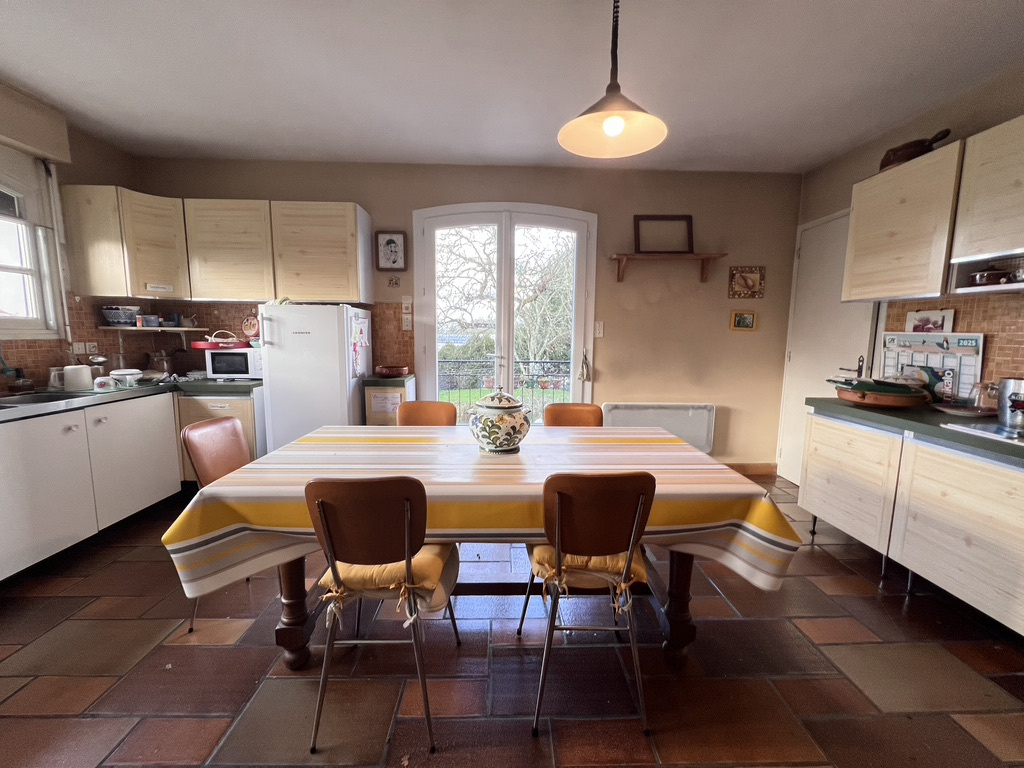 Séjour lumineux avec cheminée ouverte, cuisine spacieuse avec cellier, 2 wc.