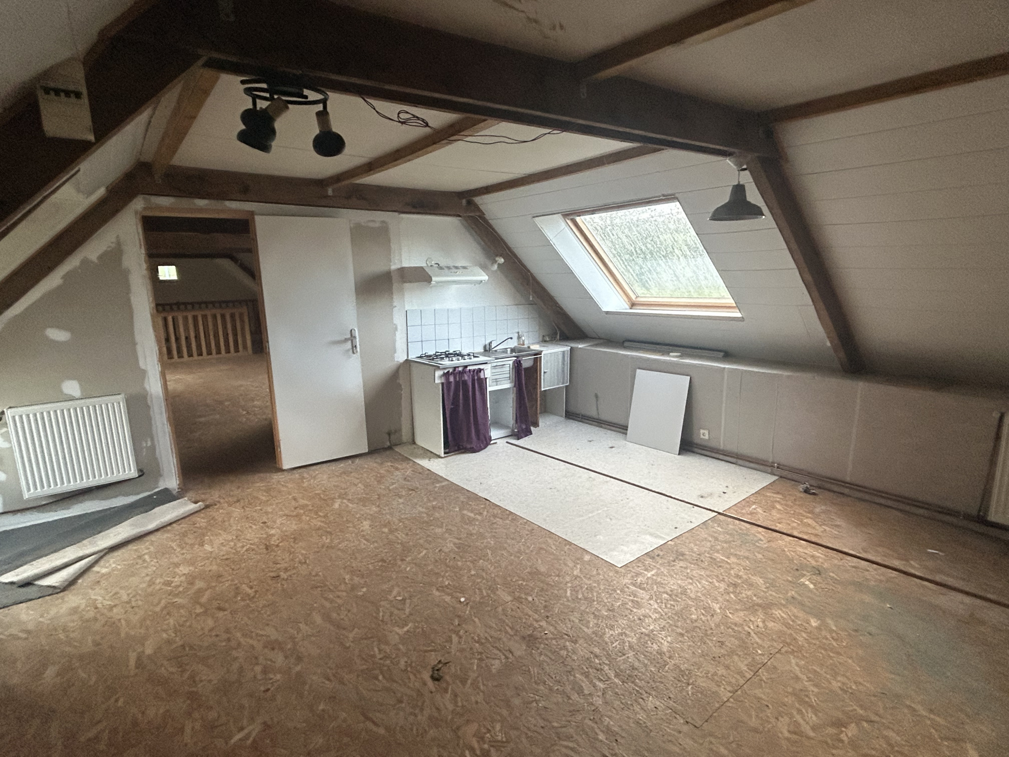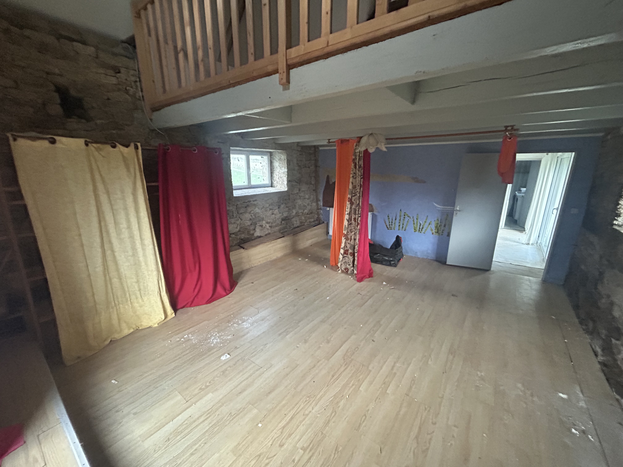 À l'étage, une mezzanine dessert une pièce avec coin cuisine et point d'eau, une chambre et une salle d'eau, offrant des espaces complémentaires selon vos besoins.
