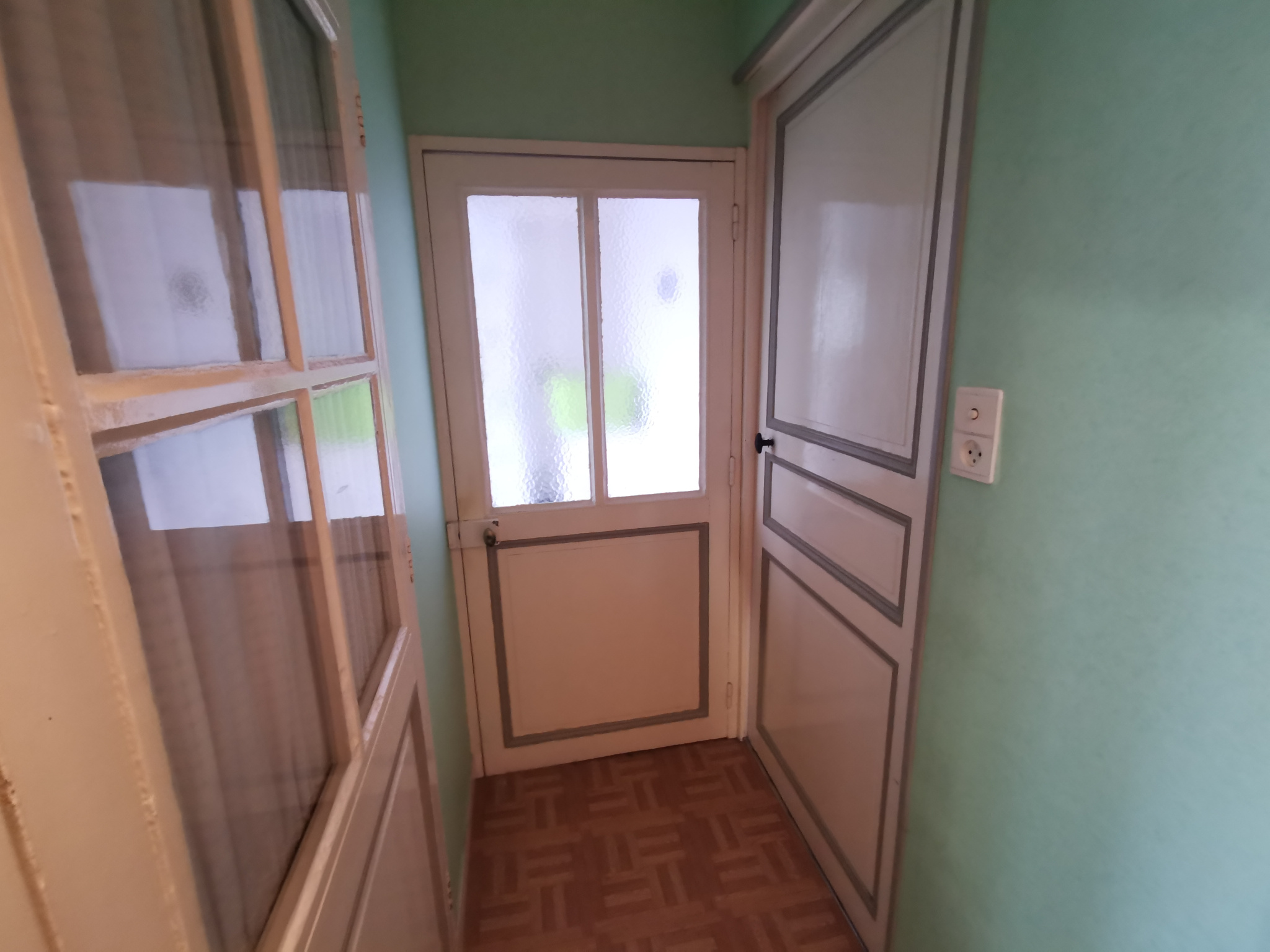Maison en plein centre bourg sur 2 niveaux comprenant au rez-de-chaussée : Pièce de vie lumineuse traversante avec cuisine aménagée, un dégagement avec un wc.