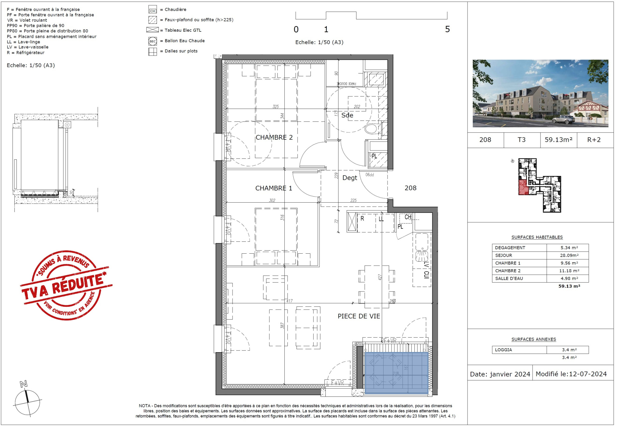 Une surface habitable de 59.13m2 plus une loggia, et un grand séjour.