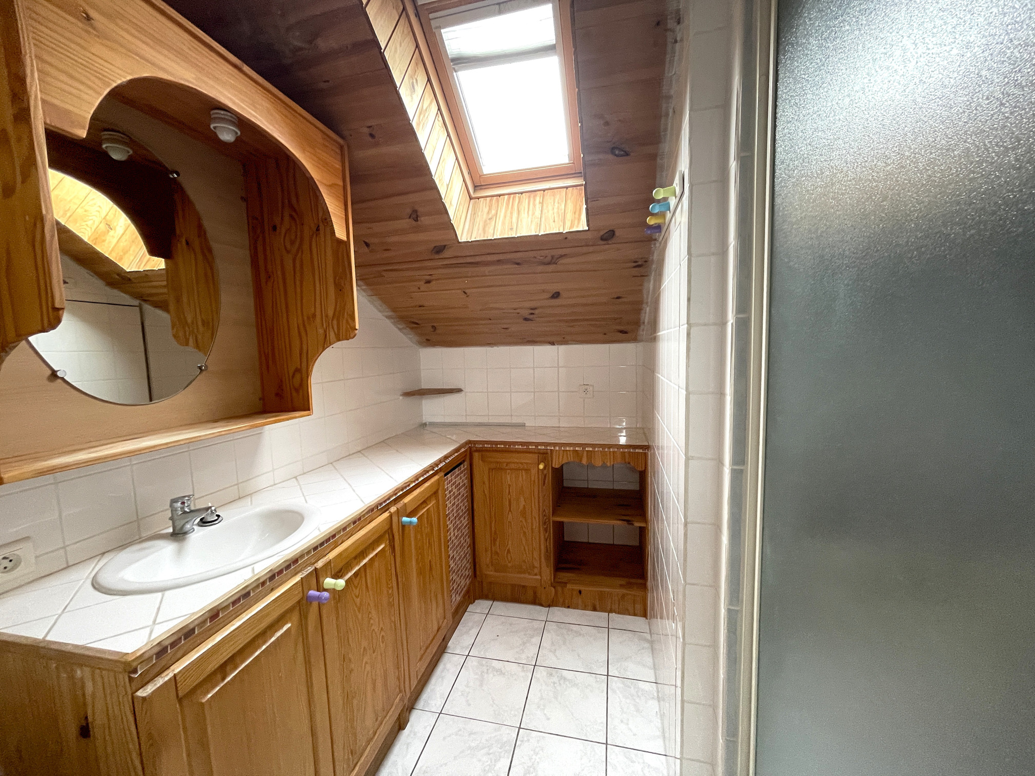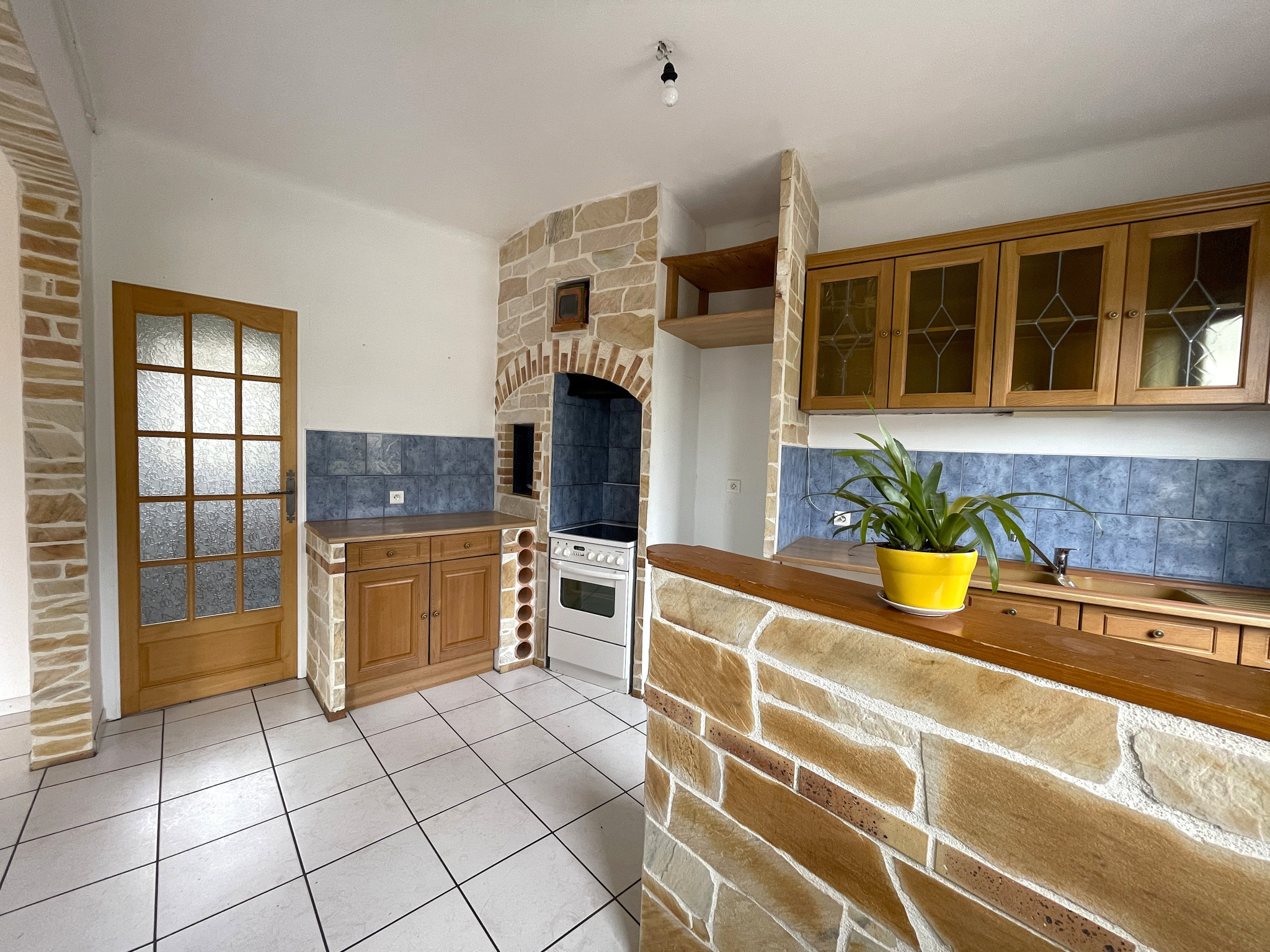 D'une superficie habitable d'environ 76 m2 (88 m2 au sol), elle comprend au rez-de-chaussée : une pièce de vie lumineuse avec espace cuisine, un cellier, un WC.
