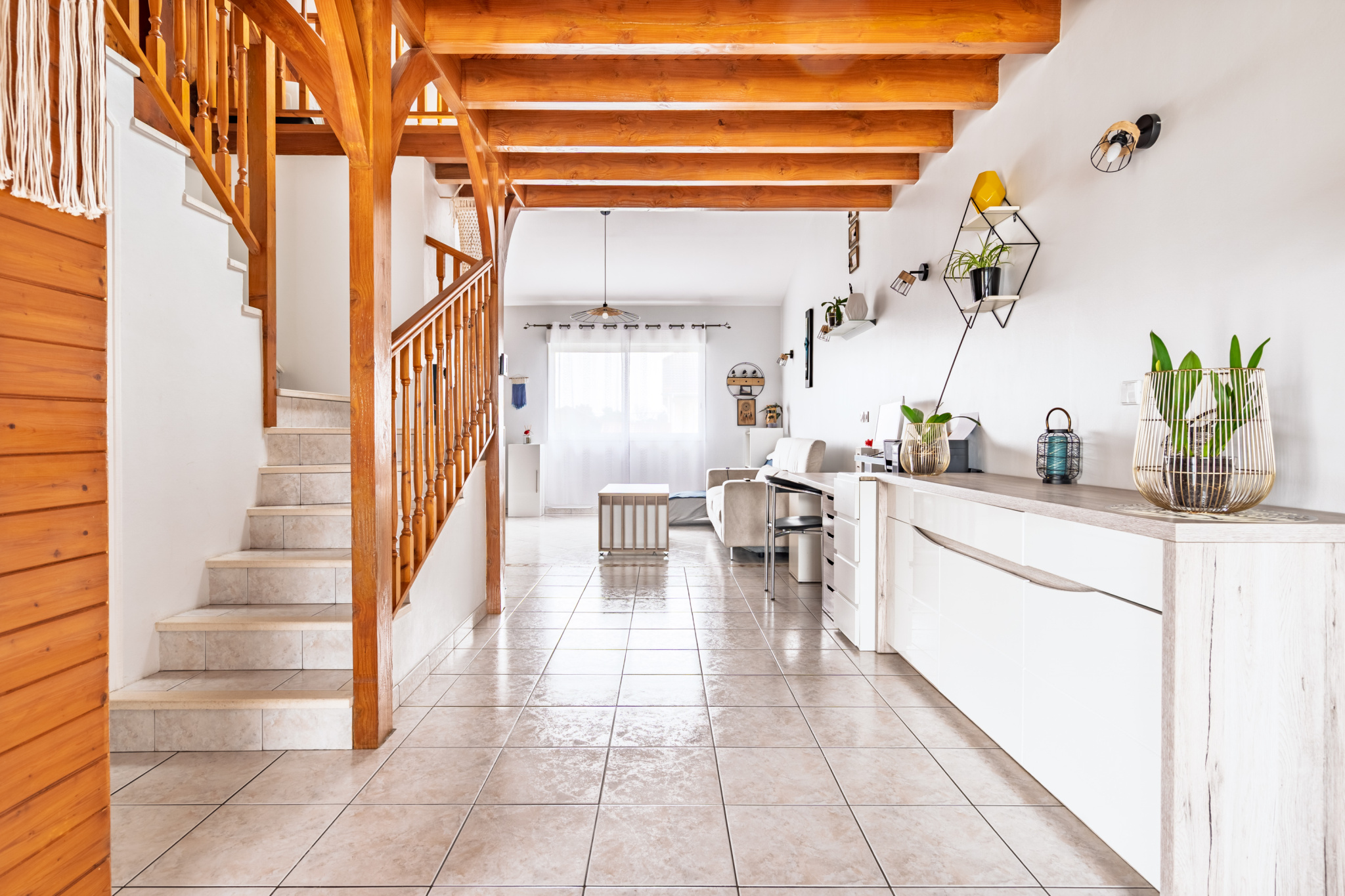 D'une surface habitable d'environ 140 m2, non mitoyenne, elle se compose d'un vaste salon-salle à manger lumineux avec un poêle à granulé, d'une cuisine indépendante,wc indépendant, de trois chambres dont deux à l'étage, d'une mezzanine (possible chambre ou bureau), d'une salle d'eau, ainsi qu'une salle de bain avec WC.