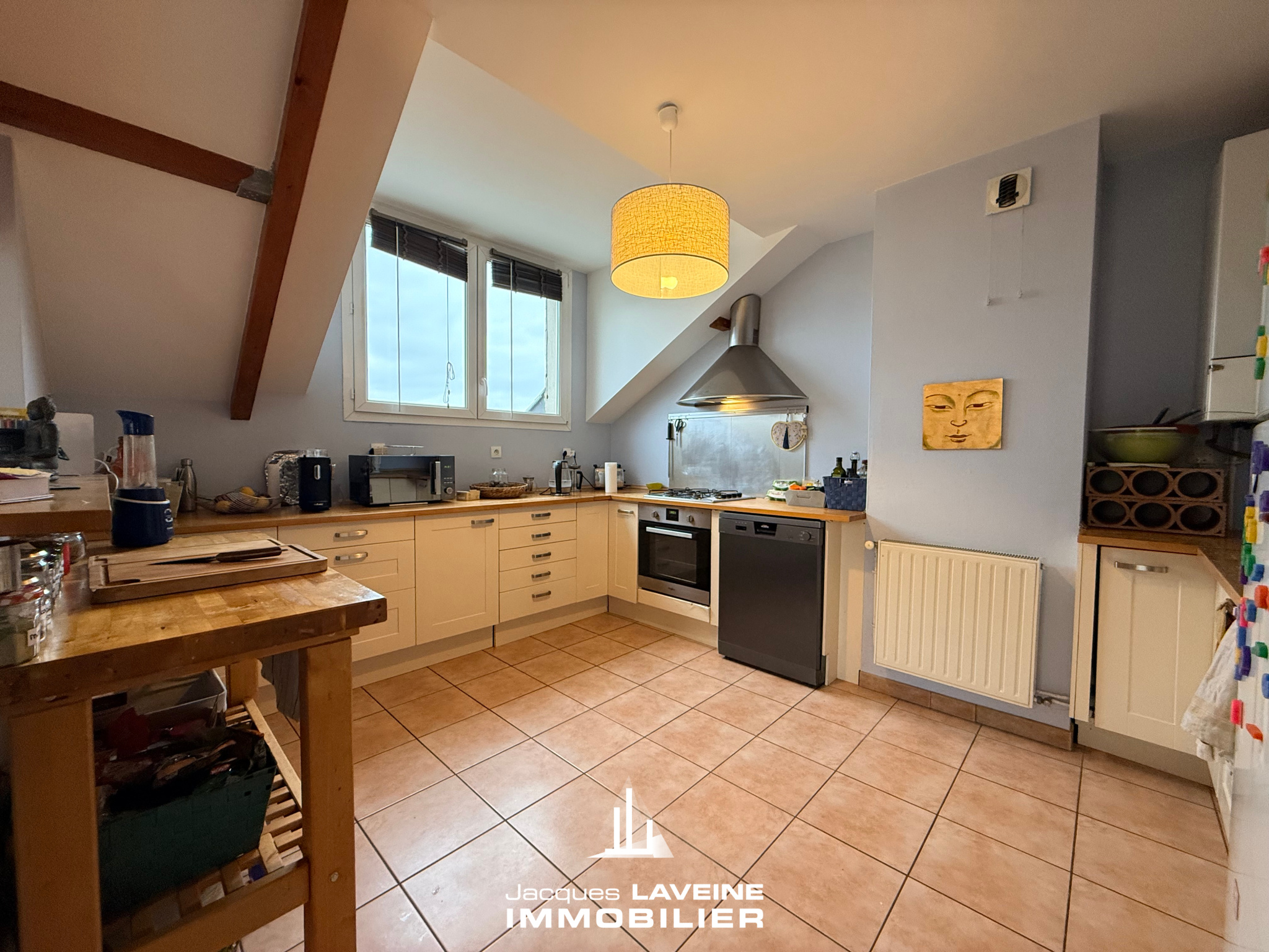 EXCLUSIVITÉ JLI! Quartier du Sablon! Au calme dans résidence de 2003, au 5o et dernier étage avec ascenseur, appartement 5 pièces de 159m2 au sol (122m2 carrez) offrant de beaux volumes, il comprend une entrée avec placards, 3 belles chambres, une salle de bains-complète, un très beau salon-séjour de + de 55m2 au sol donnant accès à une terrasse de 12m2, cuisine équipée us, dressing (possibilité 2ième salle de bains), débarras. Cave et emplacement de parking au sous-sol avec prise de recharge électrique privative. Chauffage individuel au gaz. Vue dégagée, en très bon état! Possibilité d'achat d'un garage fermé en sus.