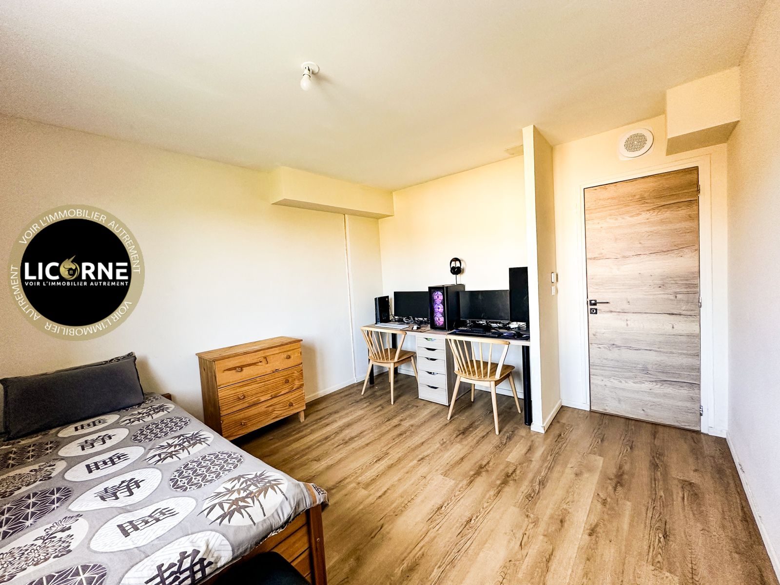 Grand séjour lumineux de 34 m² avec cuisine équipée, 2 chambres dont une grande de 28 m², une salle d'eau moderne, une buanderie et une terrasse de 17 m².