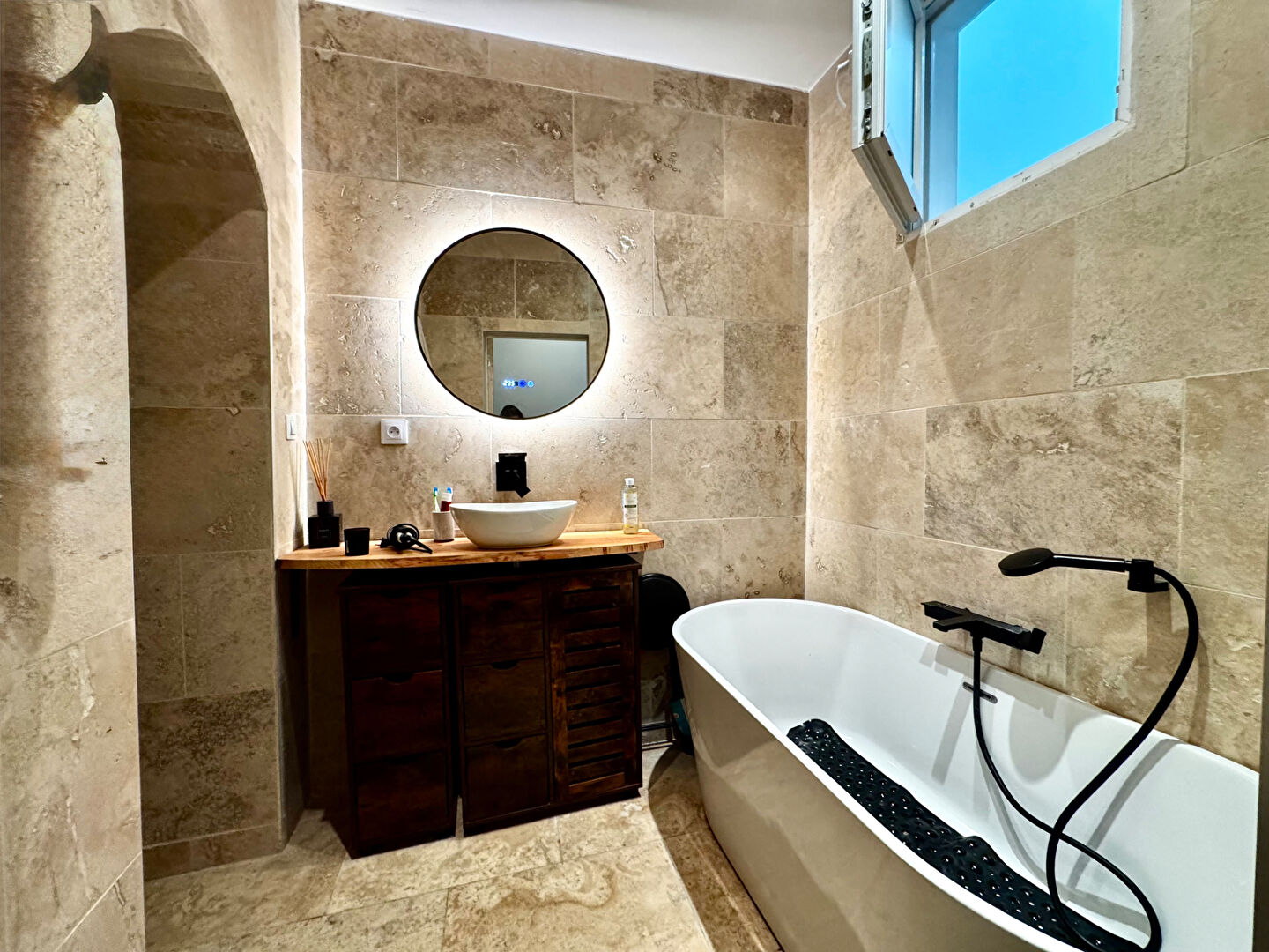 Au 1er étage, vous trouverez deux autres chambres spacieuses climatisées dont une avec dressing et une salle de bains en travertin avec douche à l'italienne et baignoire.