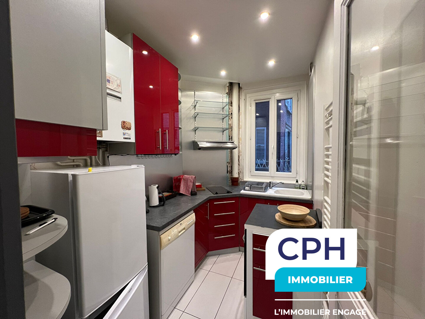 Dans un bel immeuble ancien en briques, beaucoup de charme pour cet appartement de 2/3 pièces avec parquet, moulures et cheminée, comprenant entrée, cuisine indépendante, séjour, salon, chambre, salle de bains avec WC.
