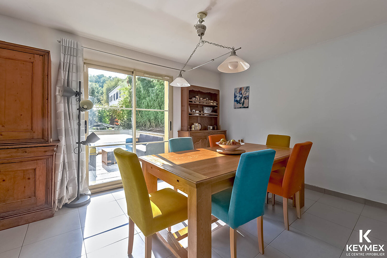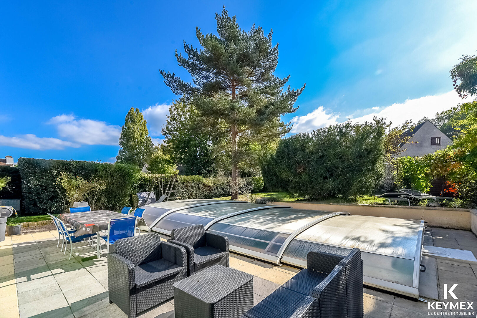 Un jardin arboré avec piscine et grande terrasse parfait pour les enfants ou les repas en extérieur