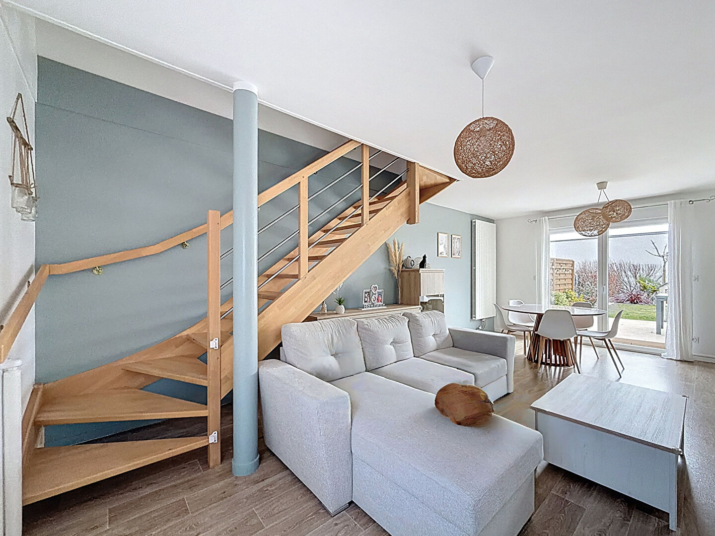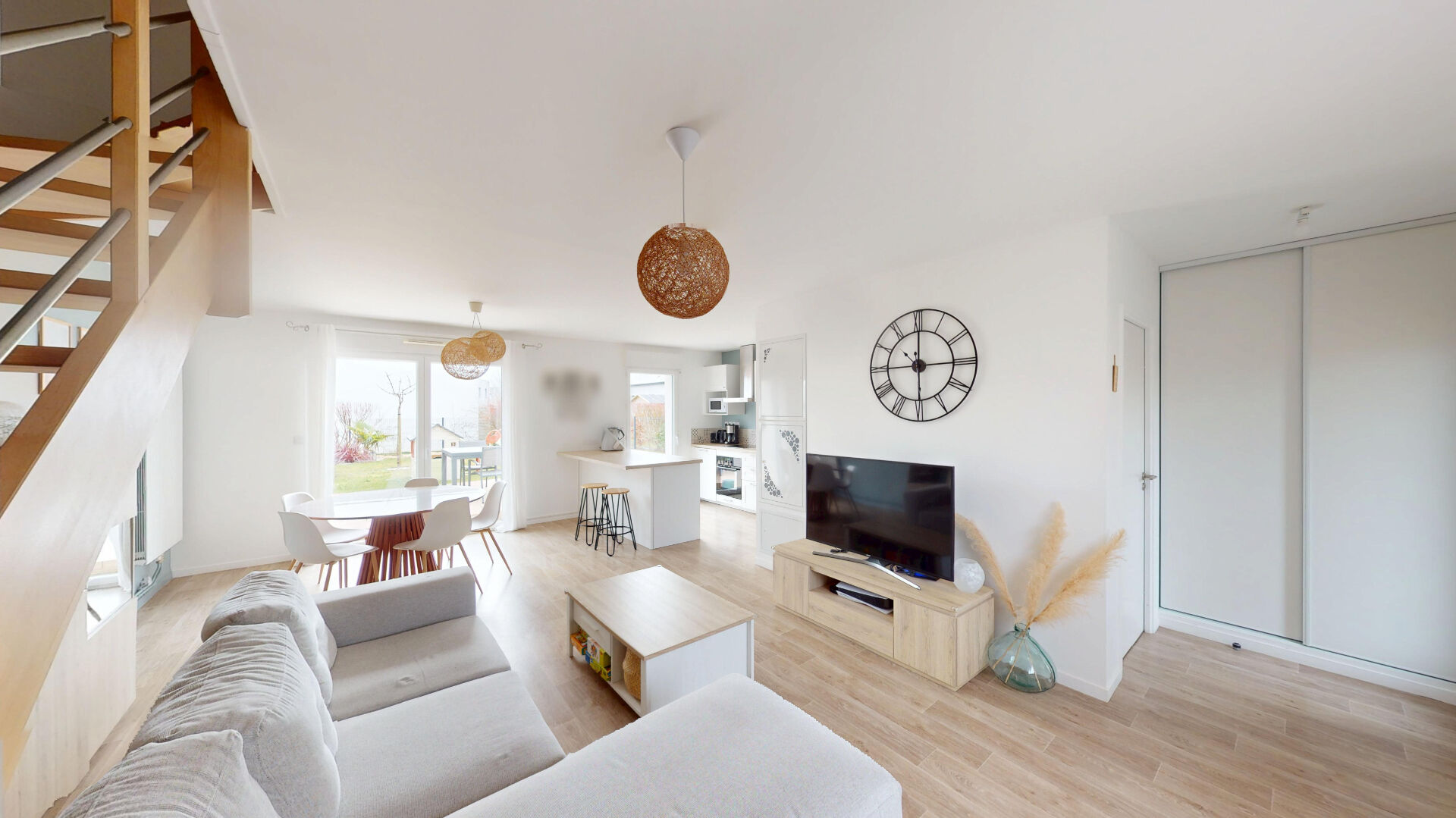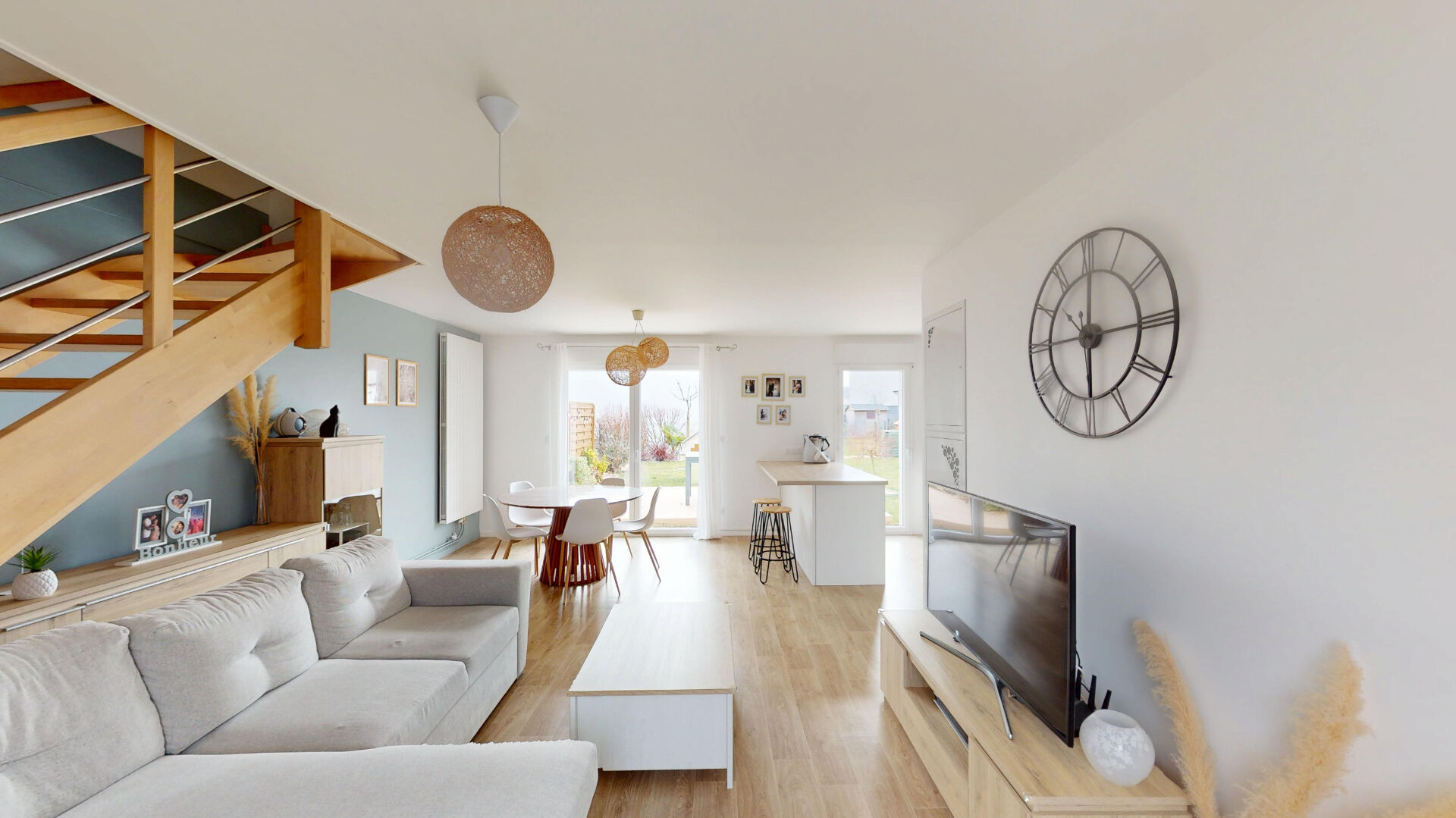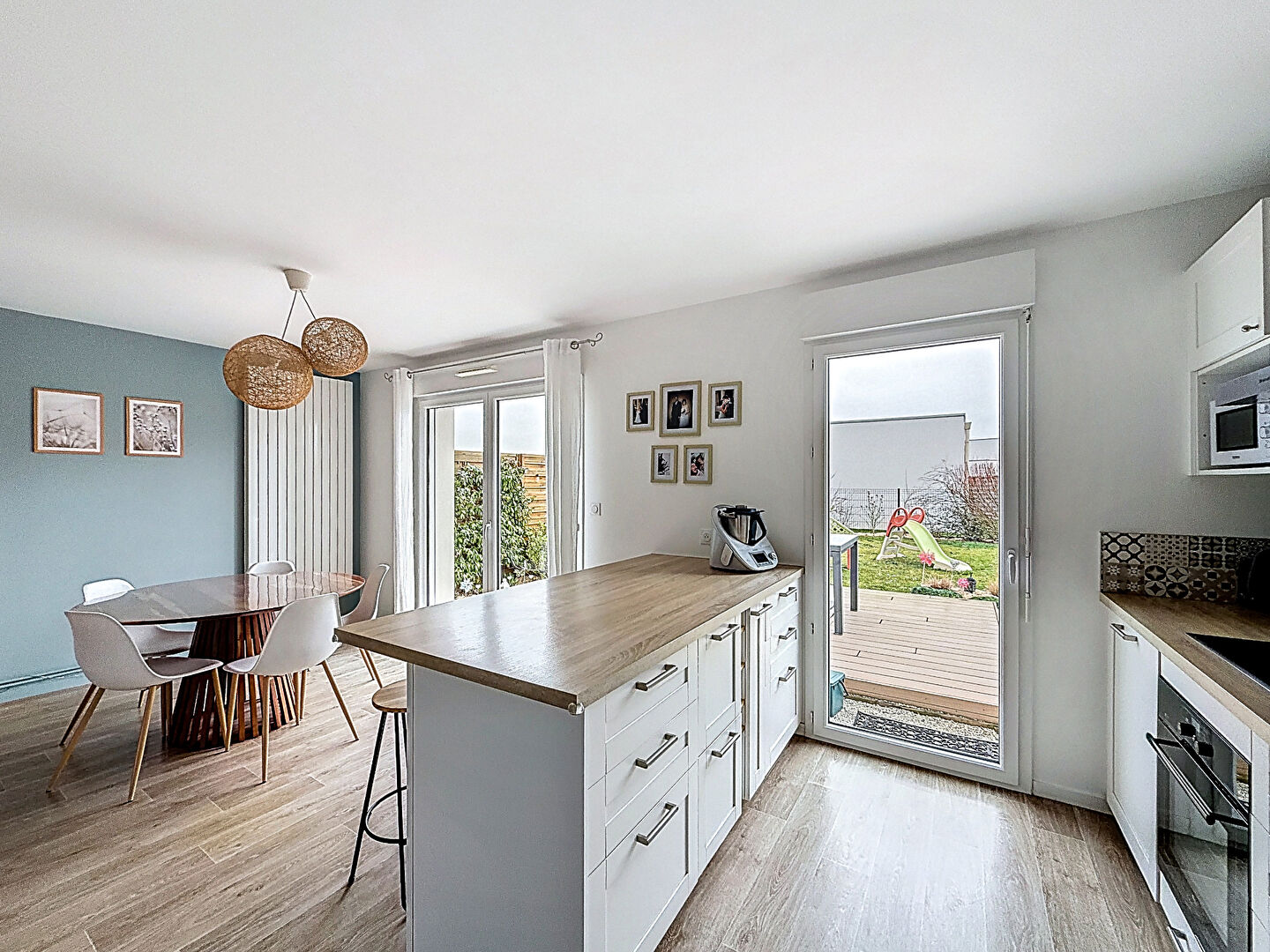 Une configuration idéale et optimale avec un RDC composé d'un séjour sur jardin exposé SUD EST et d'une cuisine ouverte, wc séparés, arrière cuisine et garage.