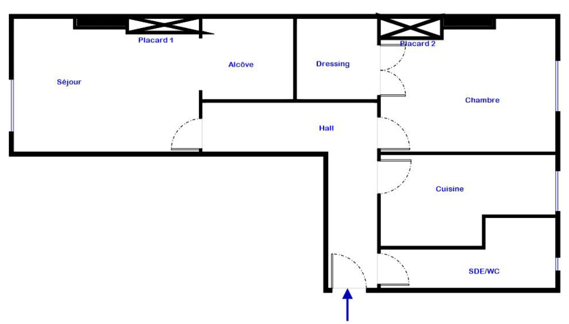 Très lumineux, il se compose d'un hall, d'une cuisine indépendante, d'une salle d'eau avec WC, d'une chambre avec alcôve servant de dressing ainsi que d'un séjour disposant également d'une alcôve, idéal pour un coin bureau.