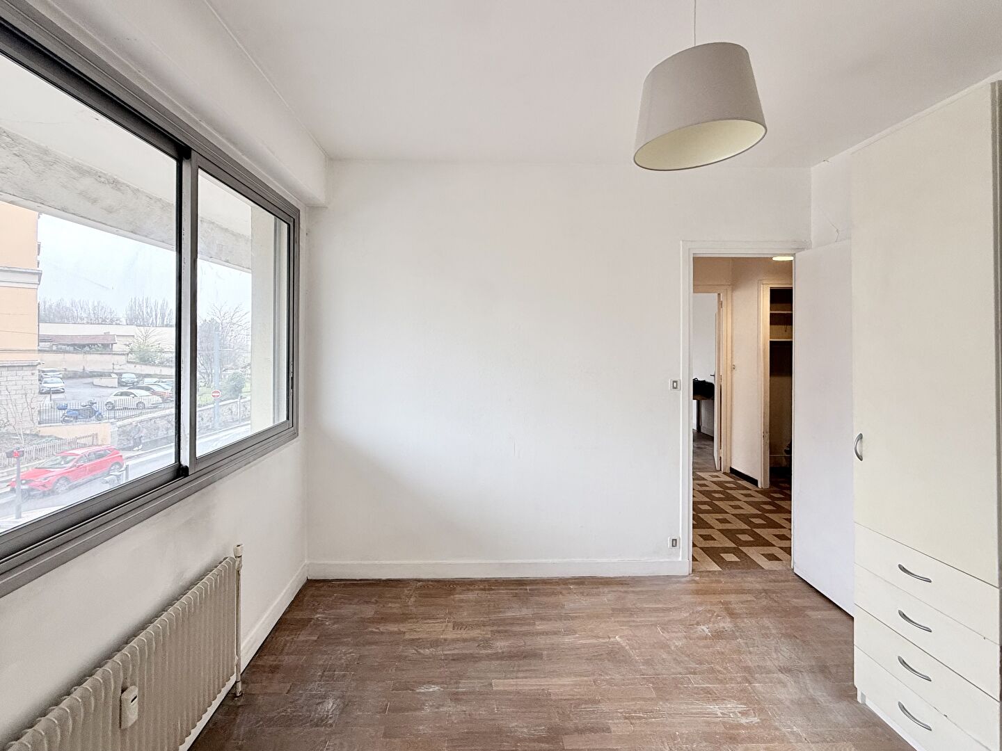 Il se compose d'une entrée desservant un séjour lumineux offrant une vue dégagée sur le cours Tolstoï et la place Grand clément, d'une cuisine, d'une chambre ainsi que d'une salle de d'eau avec WC.