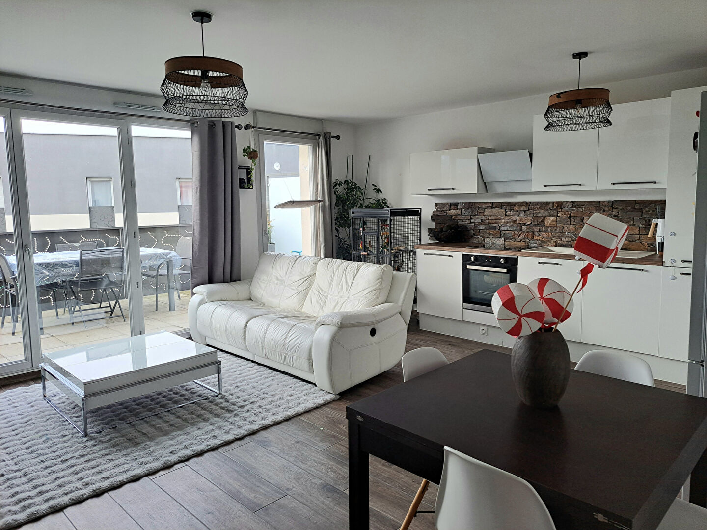 Dès l'entrée, vous découvrirez un séjour double baigné de lumière, prolongé par une cuisine ouverte moderne, entièrement intégrée, formant un espace de vie convivial et fonctionnel, parfait pour recevoir. L'ensemble s'ouvre sur un agréable balcon-terrasse avec son store banne exposé plein sud, véritable prolongement du séjour.
