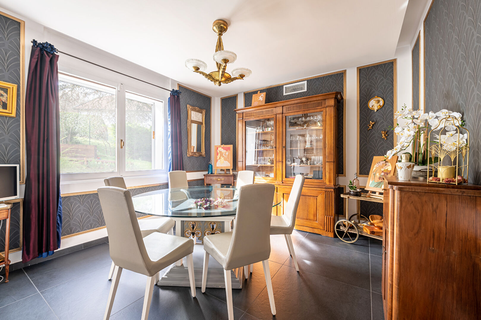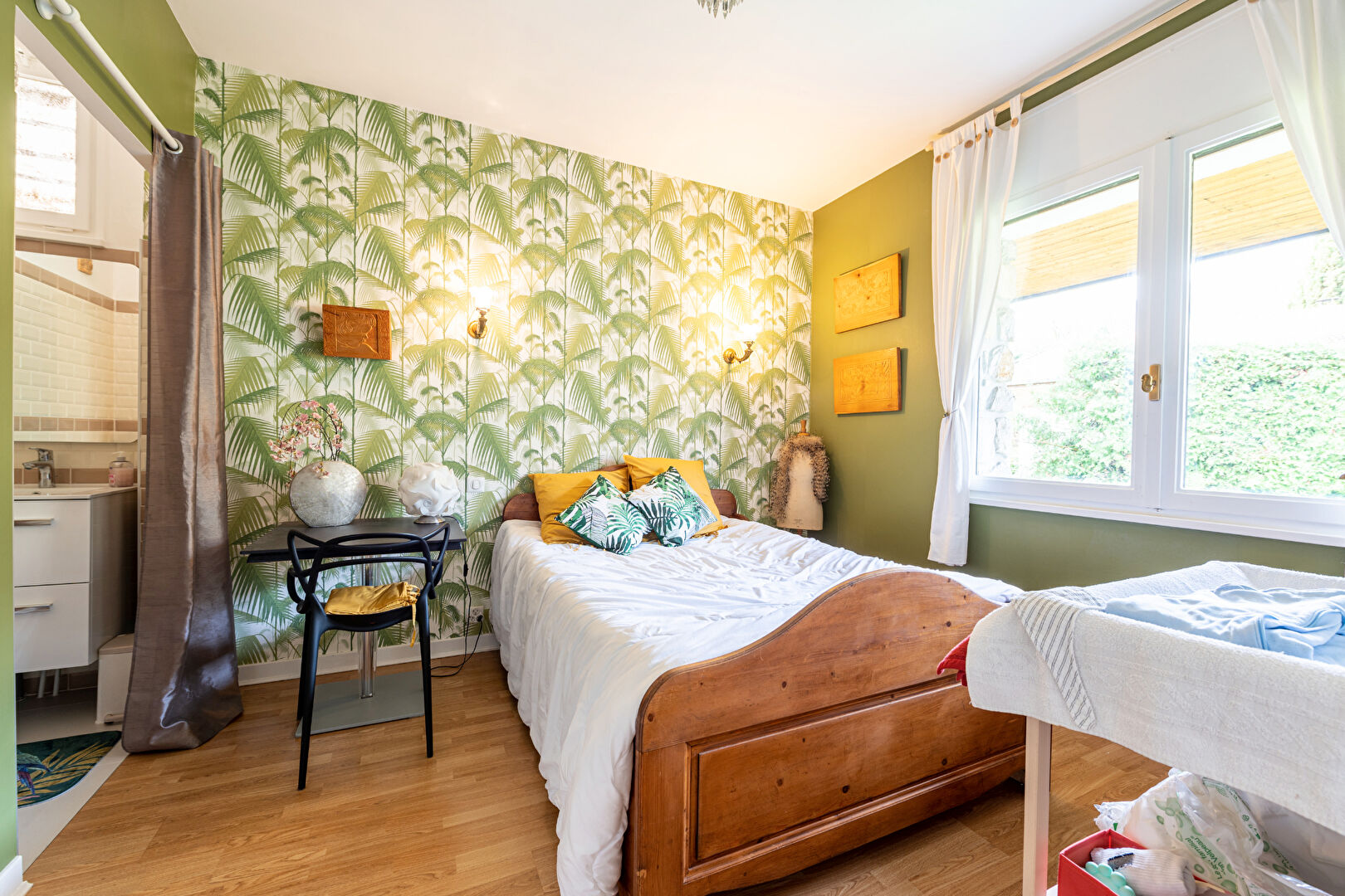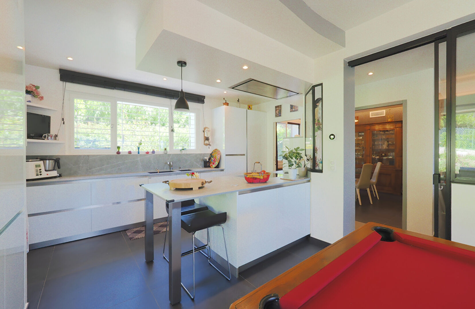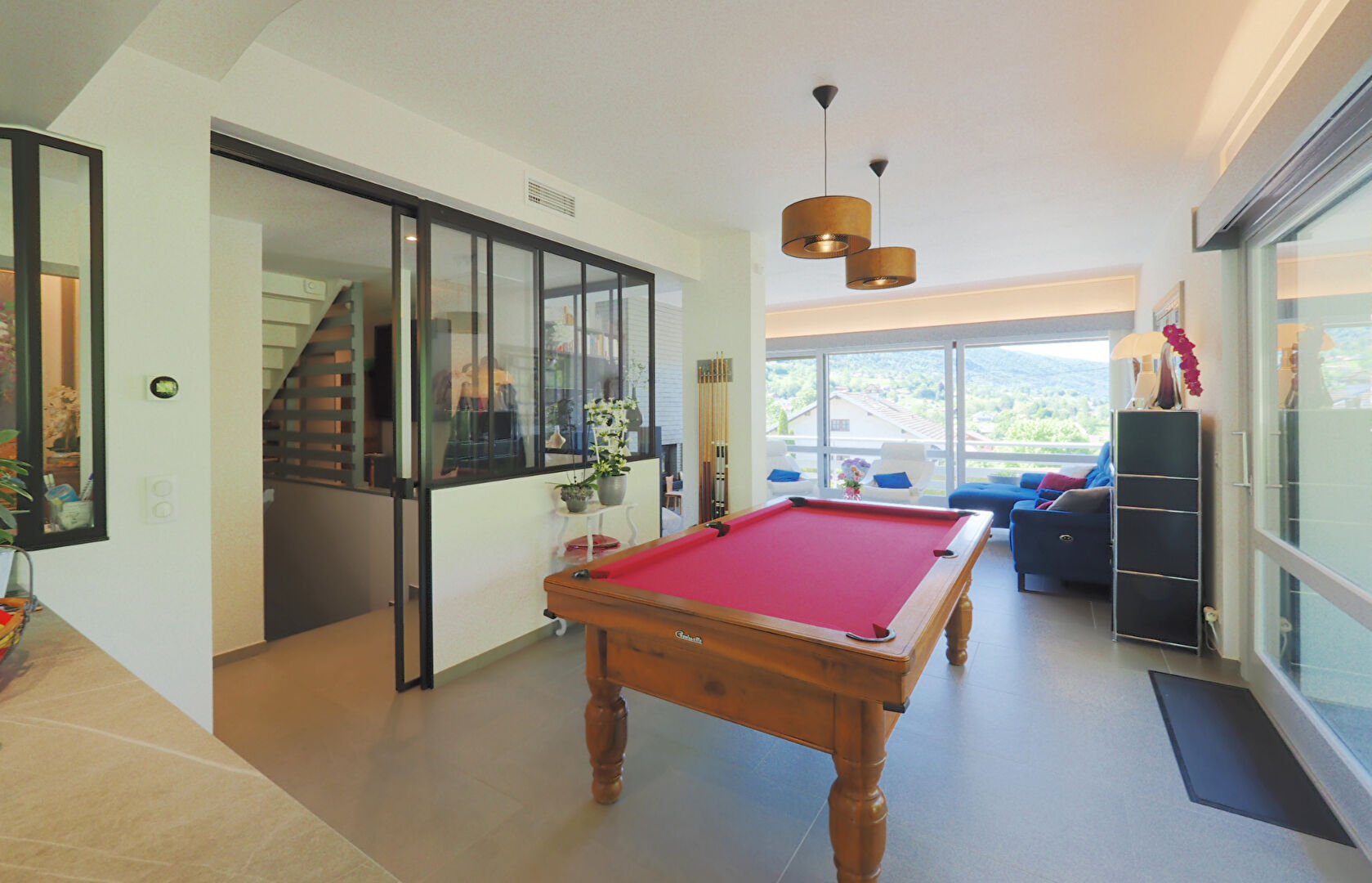 Au rez-de-jardin, vaste et lumineuse pièce de vie de 47m² ouverte sur la terrasse et le jardin et comprenant un séjour avec cheminée et une cuisine américaine super équipée, salle à manger, dégagement, 2 chambres dont une suite parentale avec dressing et salle d'eau, et un WC indépendant. A l'étage, dégagement, 2 chambres et salle d'eau avec WC.