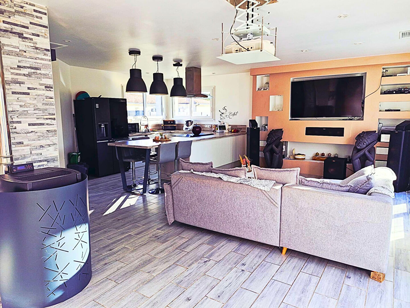 Côté confort, la maison est équipée d'un poêle à granulés et d'une pompe à chaleur (PAC), garantissant une consommation maîtrisée et un confort optimal toute l'année. Le tout est implanté sur un terrain d'environ 875 m².