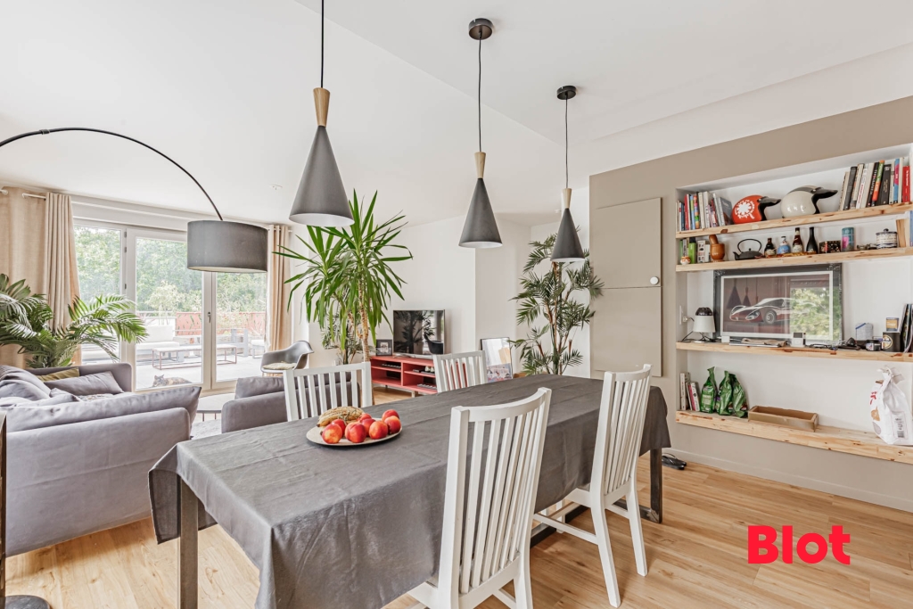 Et puisque cet appartement de 77m² environ vous offre une terrasse de la taille d'un beau jardin, vous trouverez de quoi stocker confortablement votre matériel et mobilier de jardin grâce à ses deux caves dont la plus grande mesure plus de 12m² environ.