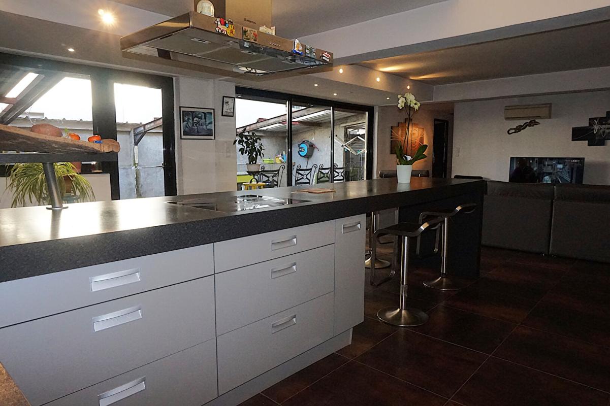 Loft de 270 m² habitables offrant de très grands volumes, avec terrasse extérieure, double garage, nombreuses dépendances et surtout 235 m² de combles aménageables, laissant un potentiel exceptionnel.