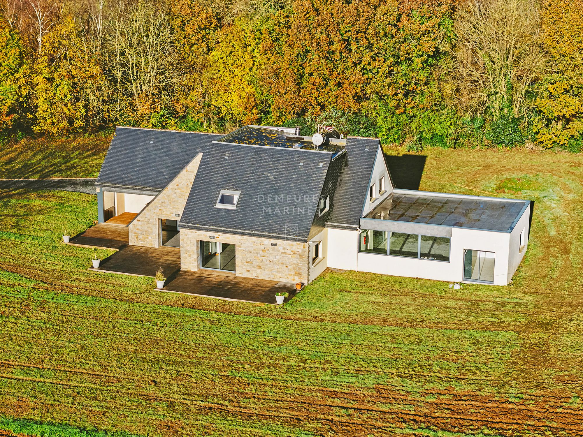Demeures Marines vous dévoile en exclusivité « Quiétude », une demeure contemporaine des années 2000 d'une surface habitable d'environ 330 M2. Située à Plélo, à proximité de Binic et de la baie de Saint-Brieuc, dans un environnement calme et verdoyant, elle offre un art de vivre équilibré entre terre et mer. Dès l'entrée, la maison dévoile de beaux volumes déplafonnés et baignés de lumière. La sensation d'espace et de fluidité s'impose. Le rez-de-chaussée accueille une entrée avec espace bureau, une généreuse pièce de vie de 86 m2 composée d'un salon-séjour cathédrale avec cheminée, d'une cuisine ouverte, aménagée et équipée et d'une arrière-cuisine. De larges ouvertures prolongent naturellement ces volumes vers une terrasse exposée plein sud, ouverte sur la campagne environnante. Elle saura accueillir vos réceptions estivales qui feront le bonheur des petits et grands. Idéale pour une vie de plain-pied, une suite parentale avec dressing et salle de bains (baignoire et douche) ainsi qu'une salle de sport viennent parfaire ce niveau. L'étage est consacré aux enfants avec sa lumineuse mezzanine, ses trois chambres, et sa salle de bains (douche et baignoire). Un espace indépendant modulable comprenant une chambre et une salle d'eau complète l'ensemble. Édifiée sur un terrain d'environ 7 000 m2, cette maison de famille par excellence offre un beau panorama sur la campagne environnante, à quelques minutes seulement du port de Binic et de la plage des Rosaires. Terrain de 6920 M2 Carport Chauffage au sol par géothermie 3 minutes des commerces et du marché hebdomadaire 5 minutes des écoles 15 minutes des plages de Saint-Quay-Portrieux et Binic 20 minutes de la gare TGV de Saint-Brieuc