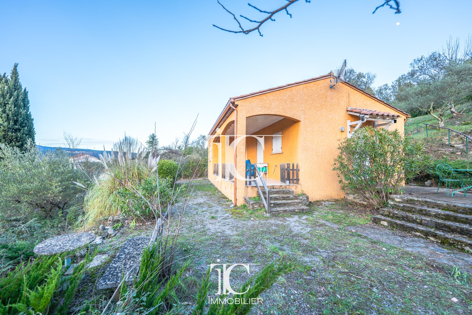 Dans un environnement calme et privilégié, en position dominante sur la commune des Vans, venez découvrir cette agréable maison construite en 2010. D'une surface habitable de 56 m², elle se compose de deux chambres confortables, d'un espace salon/cuisine lumineux et fonctionnel ainsi que d'une salle d'eau. Implantée sur un superbe terrain arboré de 2 100 m², sans aucun vis-à-vis, cette propriété offre un cadre de vie paisible et intimiste, avec une vue dégagée idéale pour profiter pleinement de la nature. Proche de toutes les commodités, elle dispose également d'une climatisation réversible et est raccordée au tout-à-l'égout.