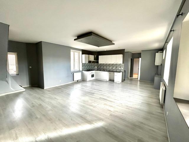 Au deuxième étage, un appartement en duplex de 103 m² composé d'une pièce de vie avec salon et cuisine ouverte, 4 chambres dont 2 en enfilades, une salle de bain séparée et 2 WC indépendants.