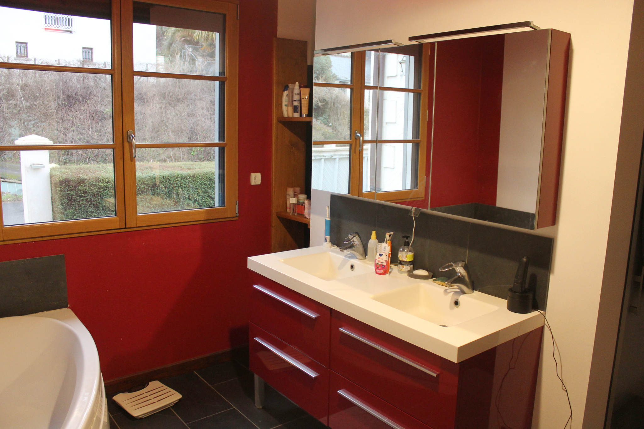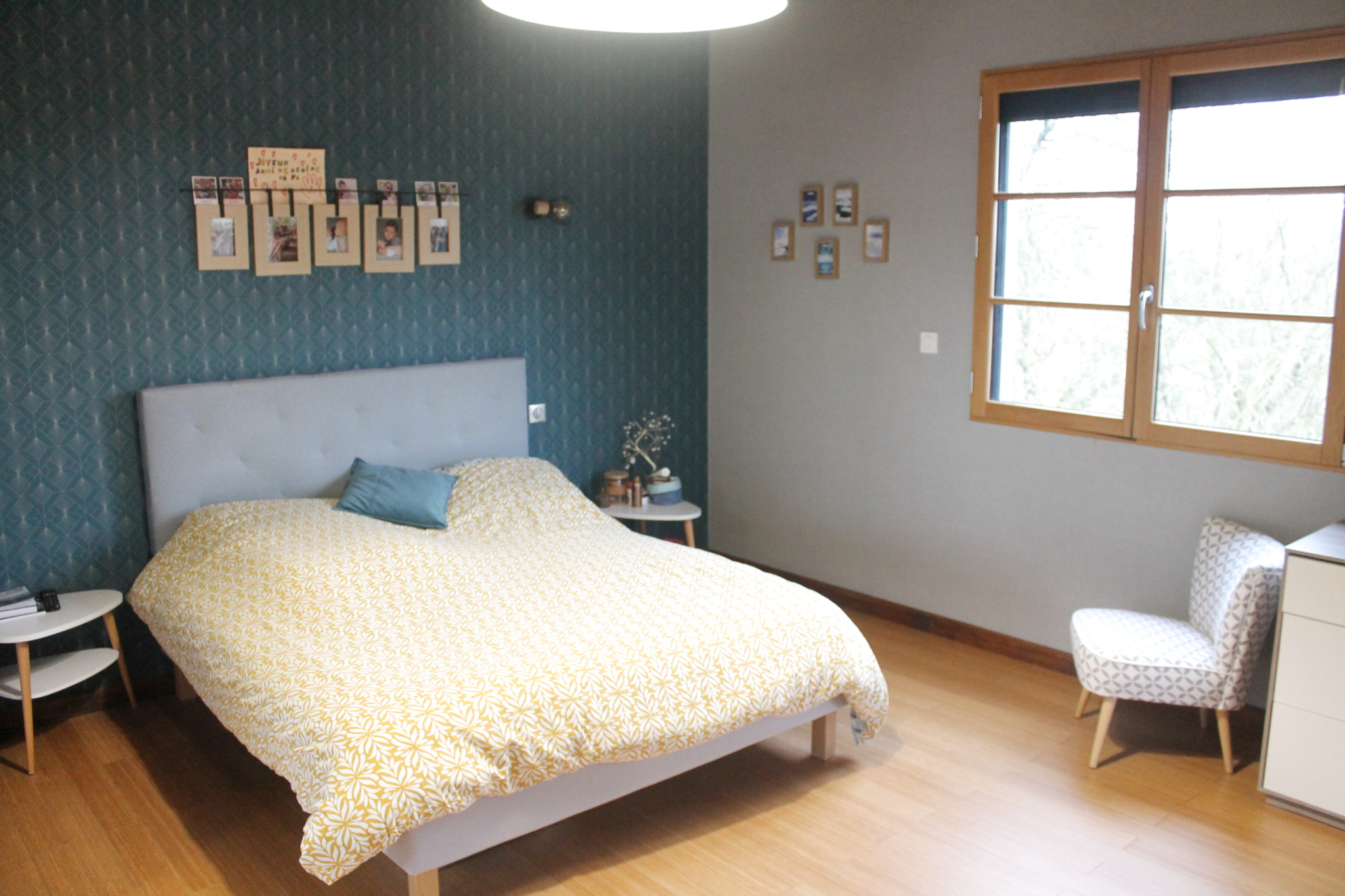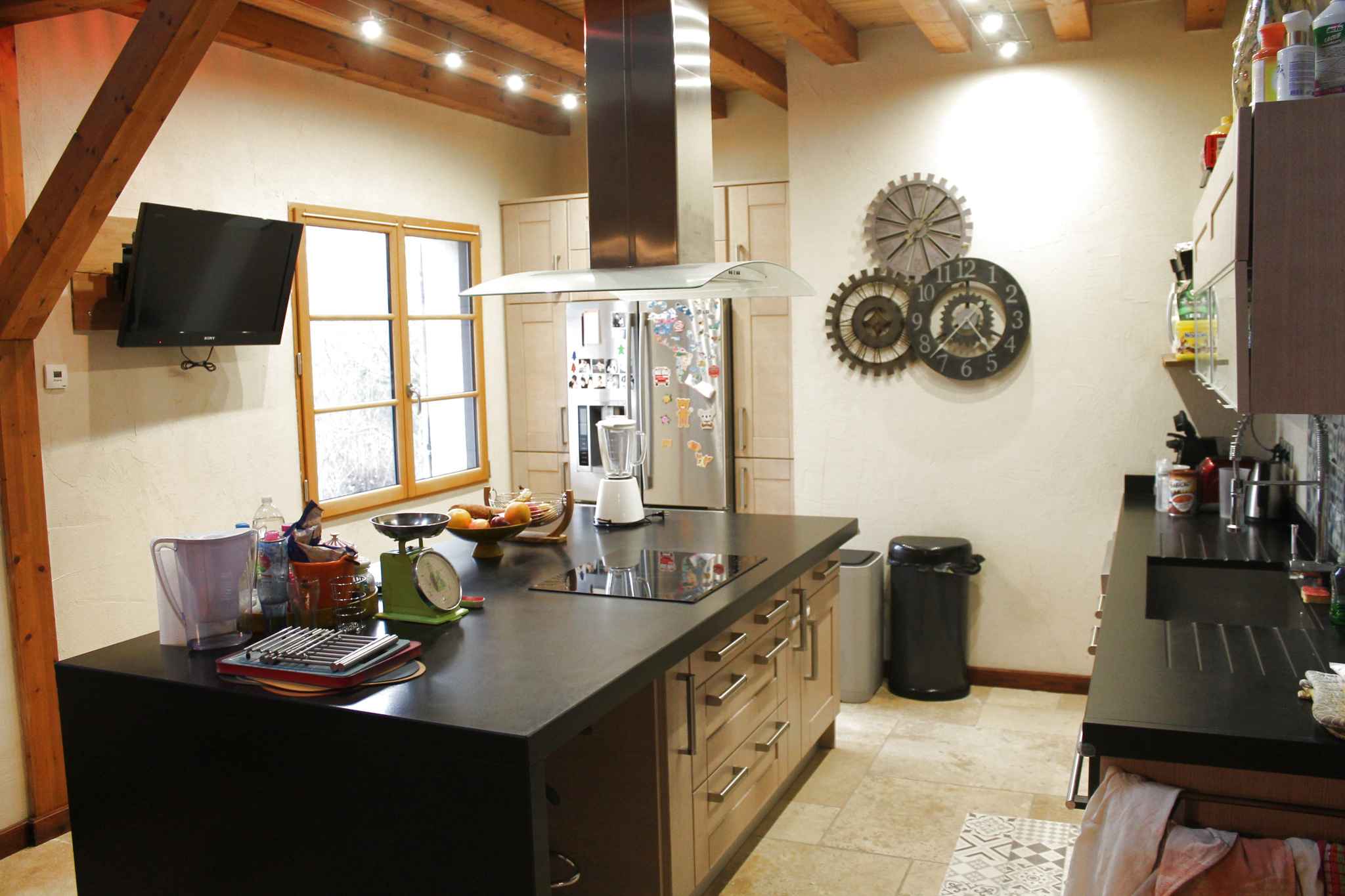 Chauffage au sol / poêle ; double vitrage omniprésent ; velux à l'étage...