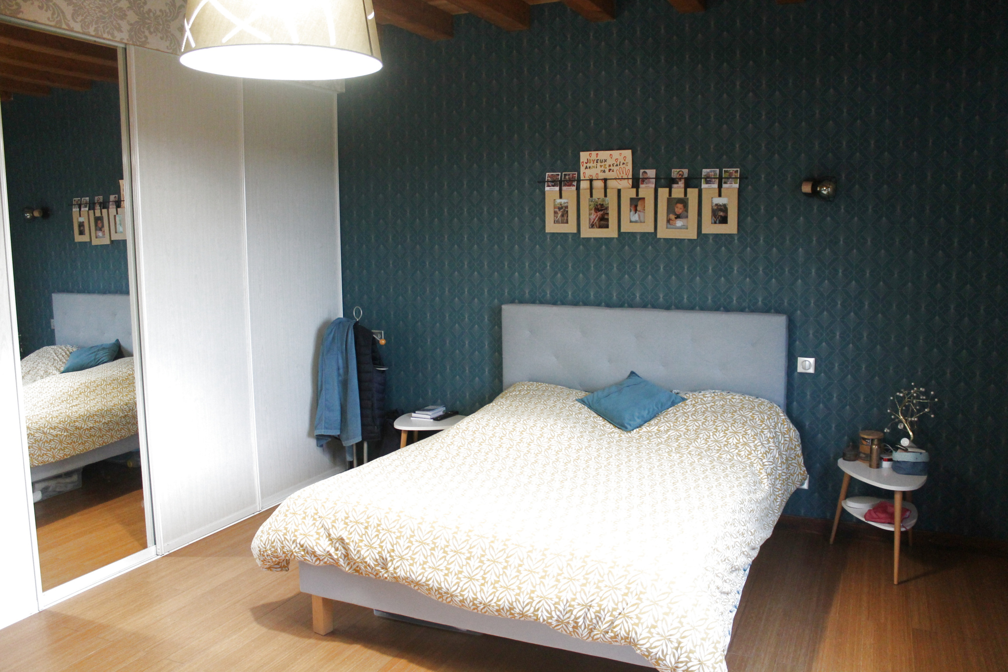 A l'étage, sous plafond cathédrale, un large espace mezzanine dessert une grande pièce de près de 27.50 m2 (soit 33 m2 au sol, à usage actuel de salle de jeux), 3 chambres d'environ 10.10 m2, 11.30 m2 et 12.60 m2 loi Carrez (respectivement 12.90 m2, 14 m2 et 15.30 m2 au sol) et une salle d'eau avec douche et WC.