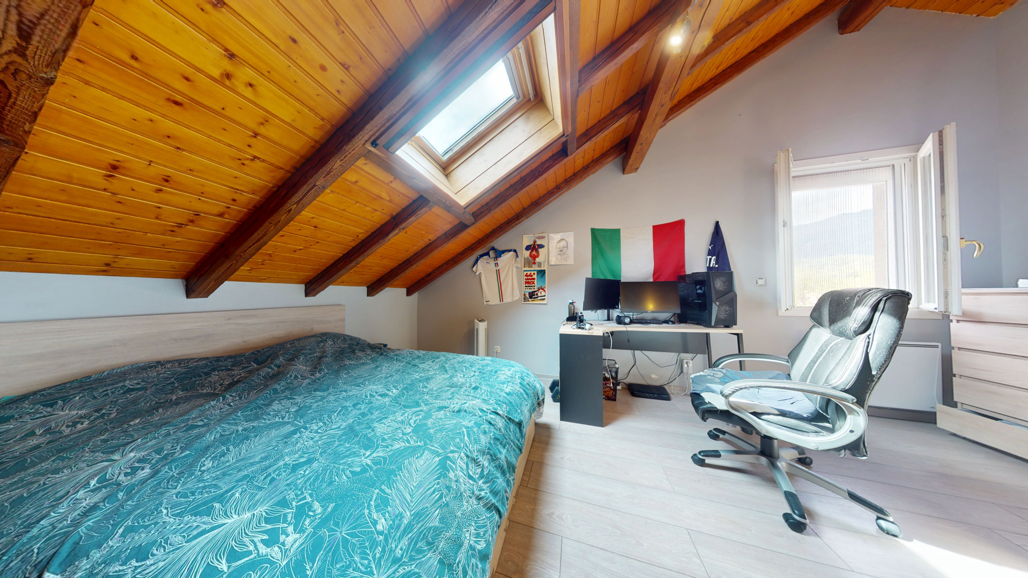 À l'étage des combles : trois chambres confortables, WC et salle de douche