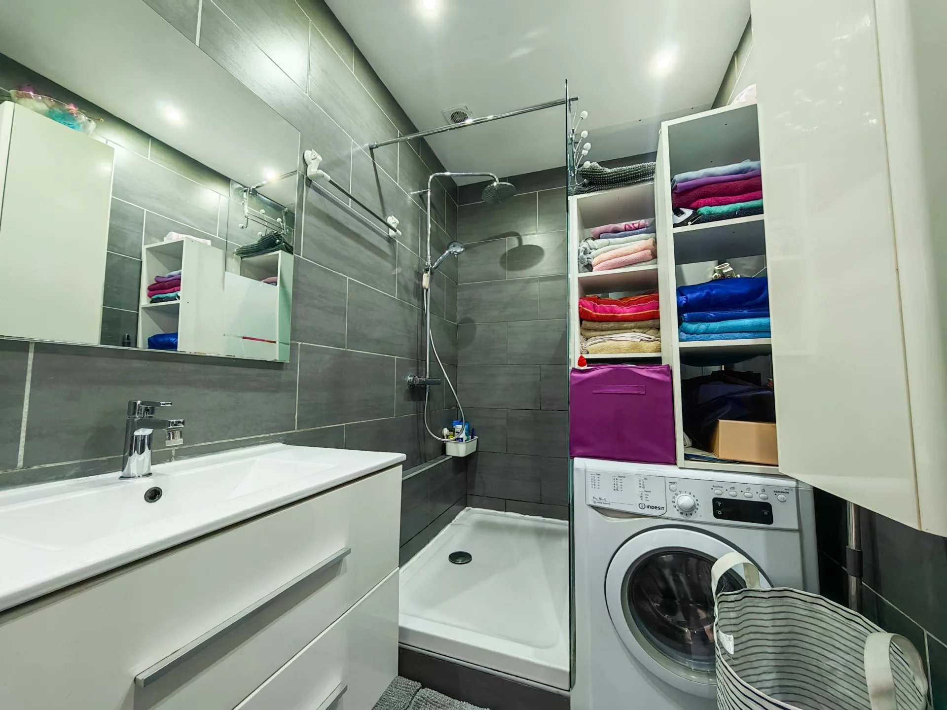 Il se compose d’un agréable séjour avec cuisine ouverte, d’une grande chambre disposant de nombreux rangements, ainsi que d’une salle d’eau avec WC.