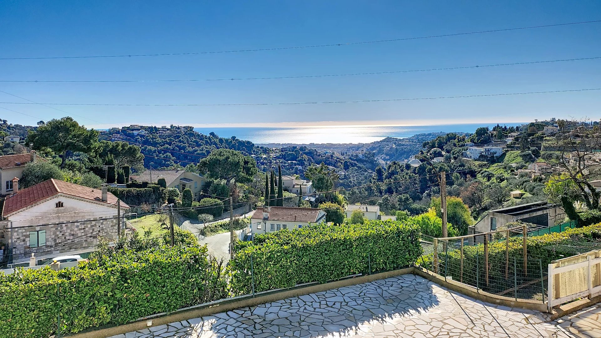 Maison avec vue mer de 152m² habitable, idéalement située à seulement 10 minutes de la Clinique Saint-Georges et de l'accès A8 Nice Nord. Actuellement configurée en deux appartements F3, elle bénéficie d'une exposition plein sud qui baigne les pièces de lumière et valorise son panorama.