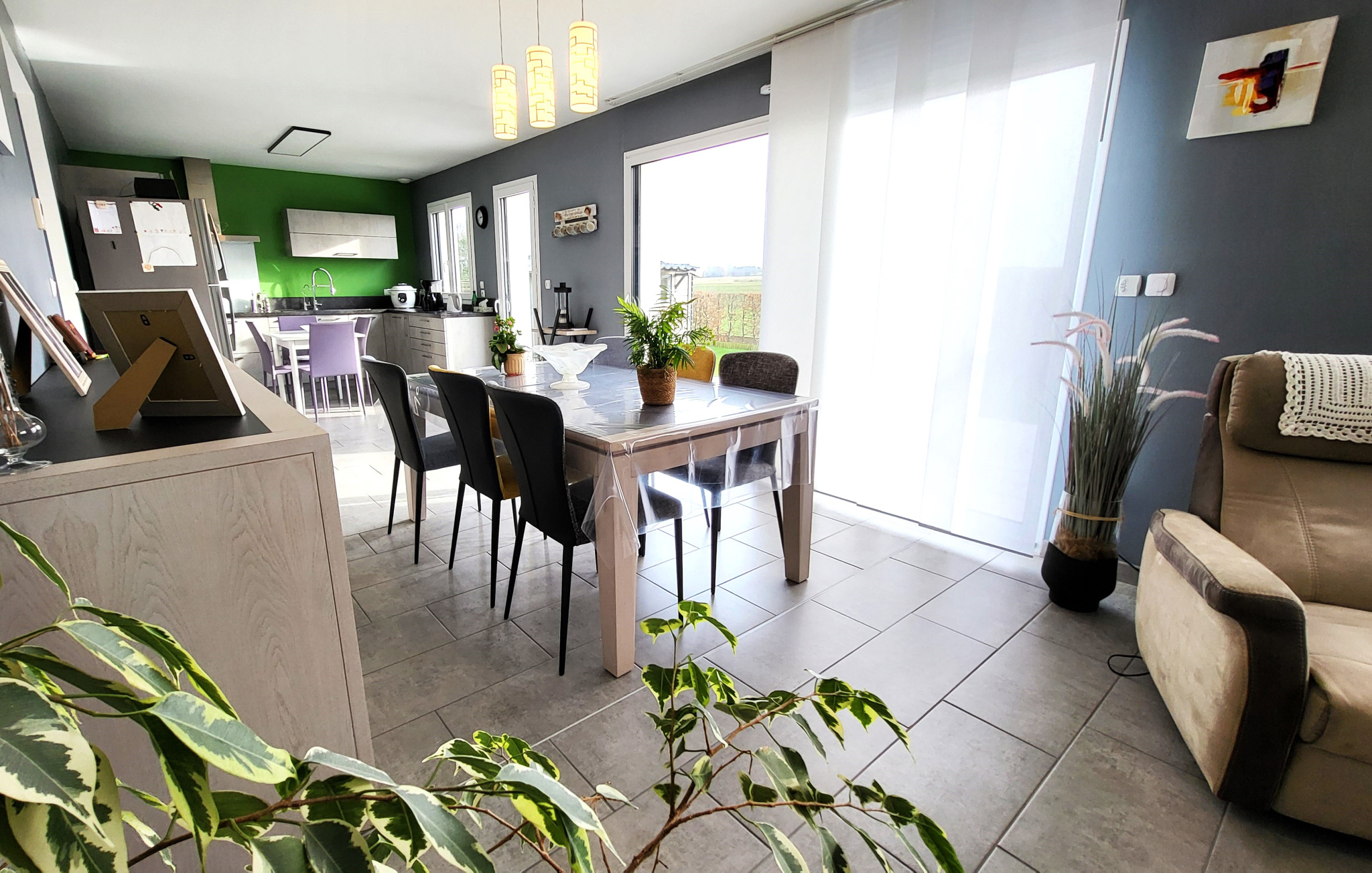 Dans la commune prisée de Sorrus à l'ouest de Montreuil et à 15 km du littoral et des plages, cette maison individuelle de 2018 présente des équipements de confort indéniables, facilitant et améliorant le quotiddien de ses occupants. Habitable en autonomie plain-pied, son agencement efficace et fluide déploie sur une surface totale de plus de 122 m2, au rez-de-jardin : un hall d'entrée agréable et fonctionnel avec son vestiaire intégré, une belle pièce de vie très lumineuse (40 m2), exposée plein sud, avec salon, séjour, et cuisine ouverte, équipée et aménagée, le tout ouvrant sur la terrasse avec vue dégagée sur la campagne, une chambre avec placard dressing (actuellement salle de jeux), une salle de bain avec vasque, douche à l'italienne et baignoire d'angle, toilettes séparé (lave-main avec écupérateur d'eau), une pièce technique (buanderie, cellier, chaufferie), menant au garage (30 m2, carrelé, avec porte motorisée).