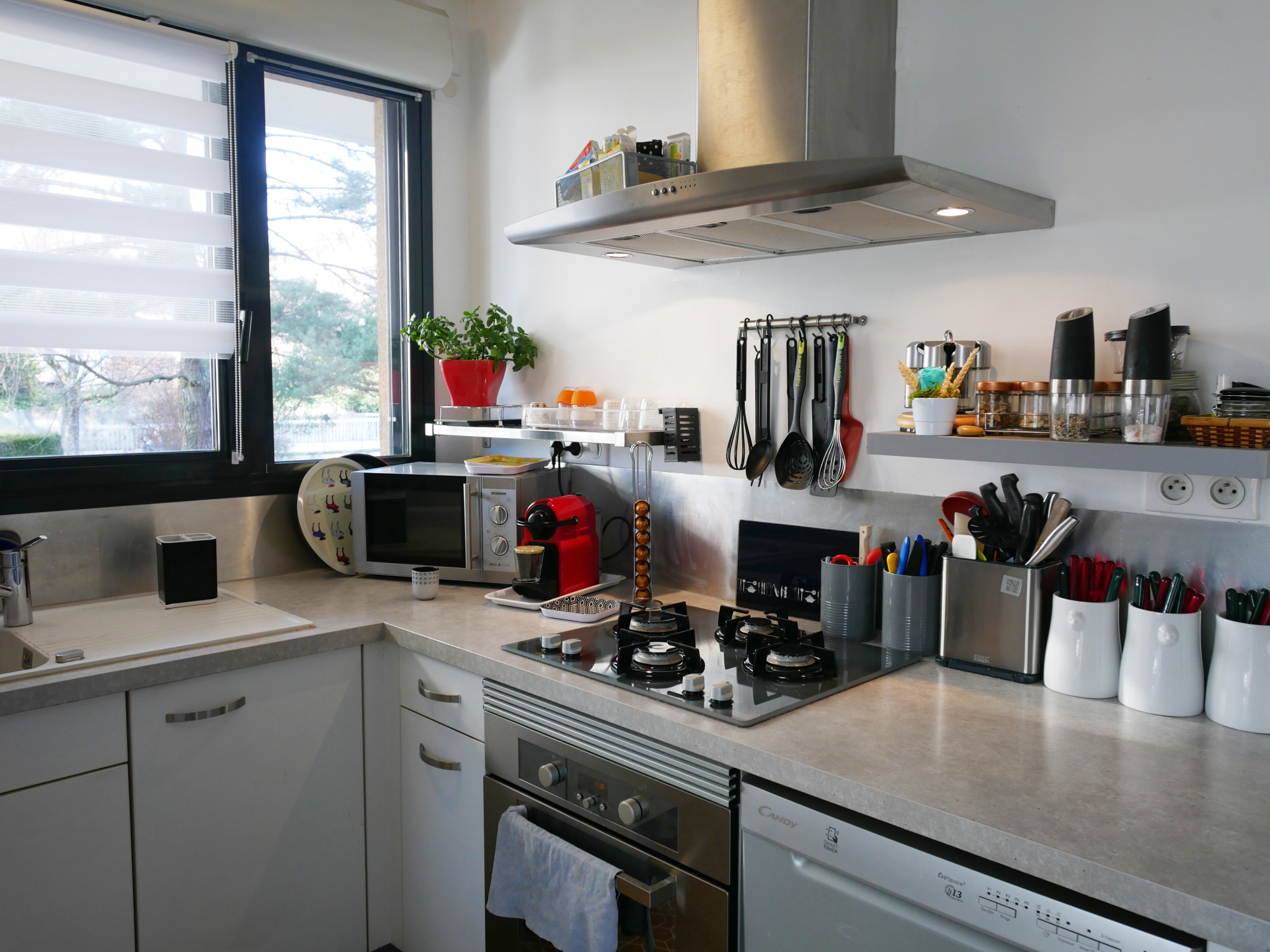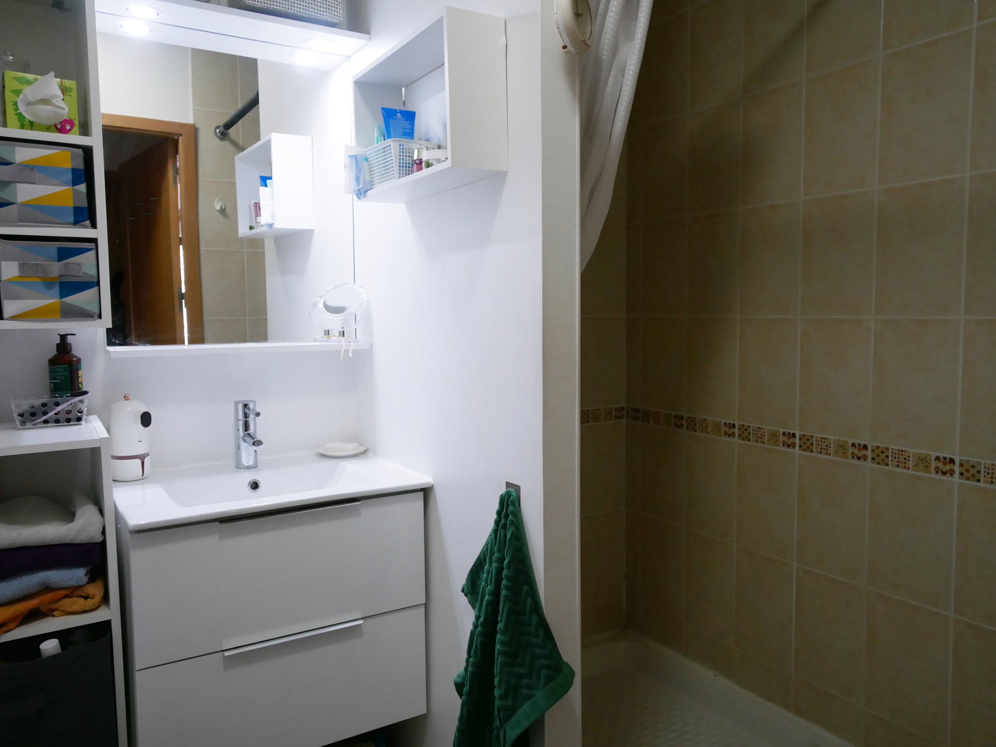 L'appartement se décompose comme suit : un hall d'entrée avec placard, un wc avec lave-main, puis vient la grande pièce de vie donnant sur une grande terrasse d'angle de plus de 30 mètres carrés orientée à l'Ouest, un espace cuisine ouvert mais distinct avec buanderie, et un espace nuit composé de deux chambres avec placards et d'une salle de douche.