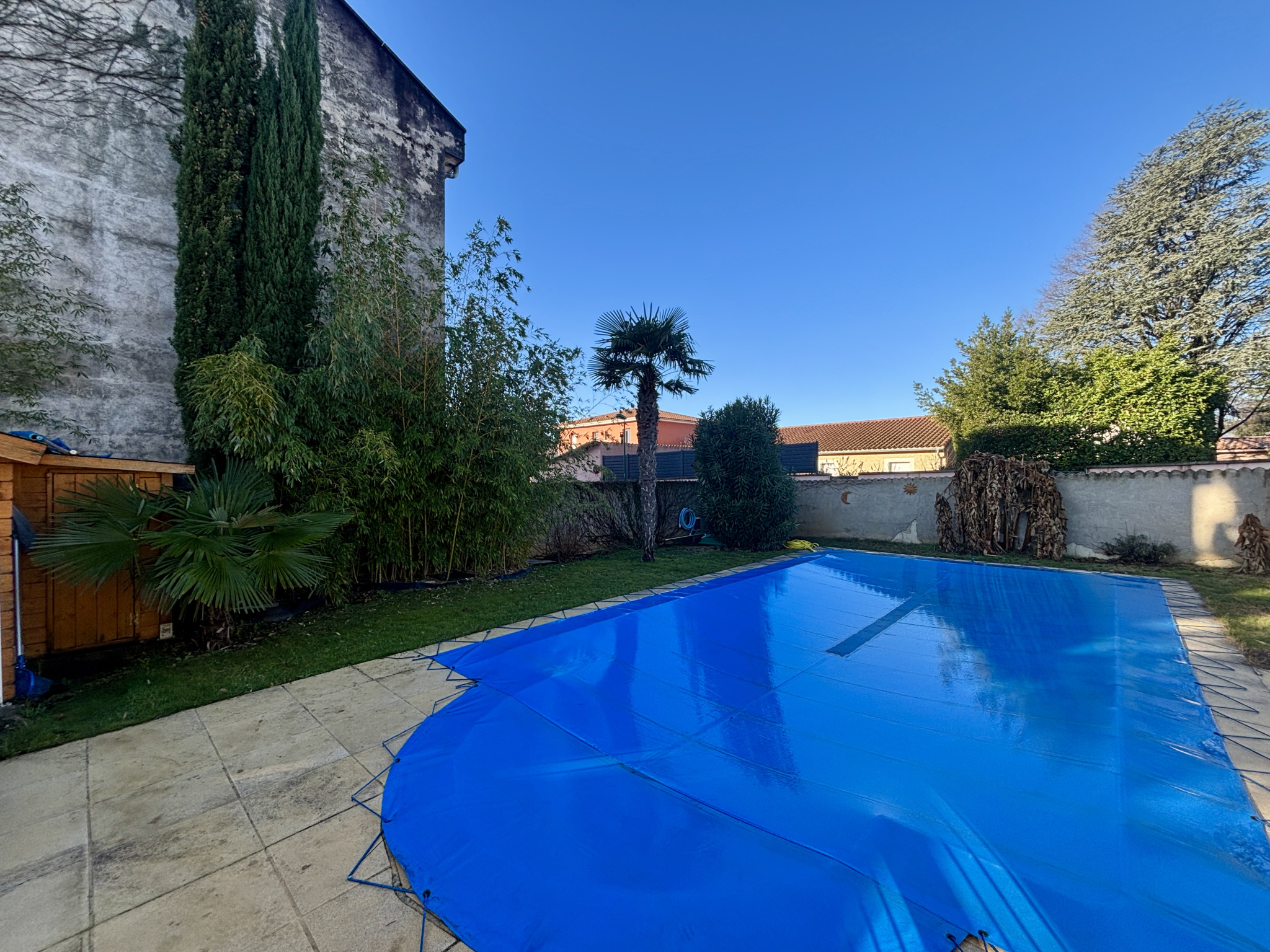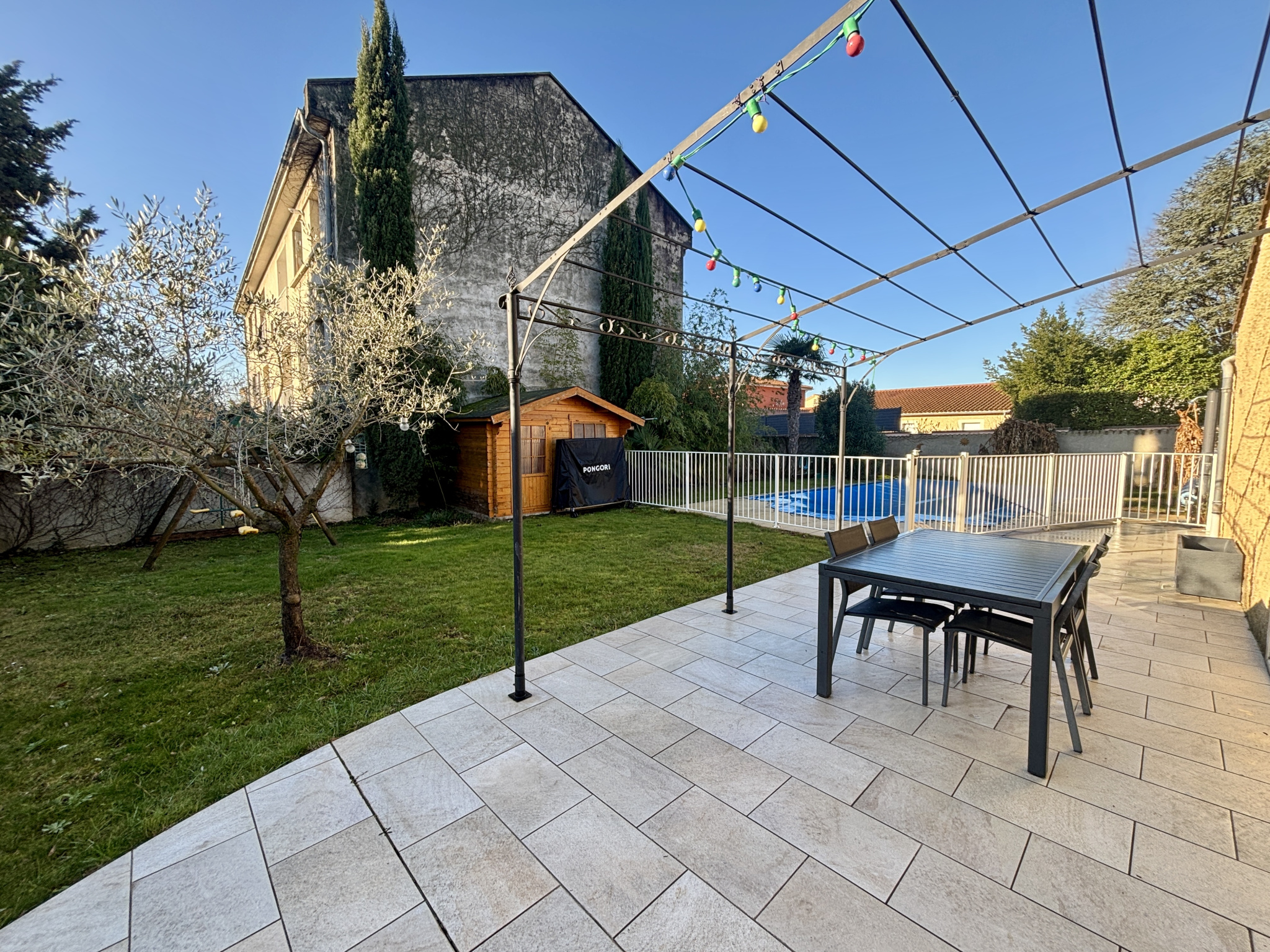 Construite sur 808 m2 de terrain entièrement clos et arboré, l'extérieur de la maison dispose d'une belle piscine sécurisée, nombreuses dépendances : abri voitures, cave, pièce de rangement extérieur, chalet en bois.