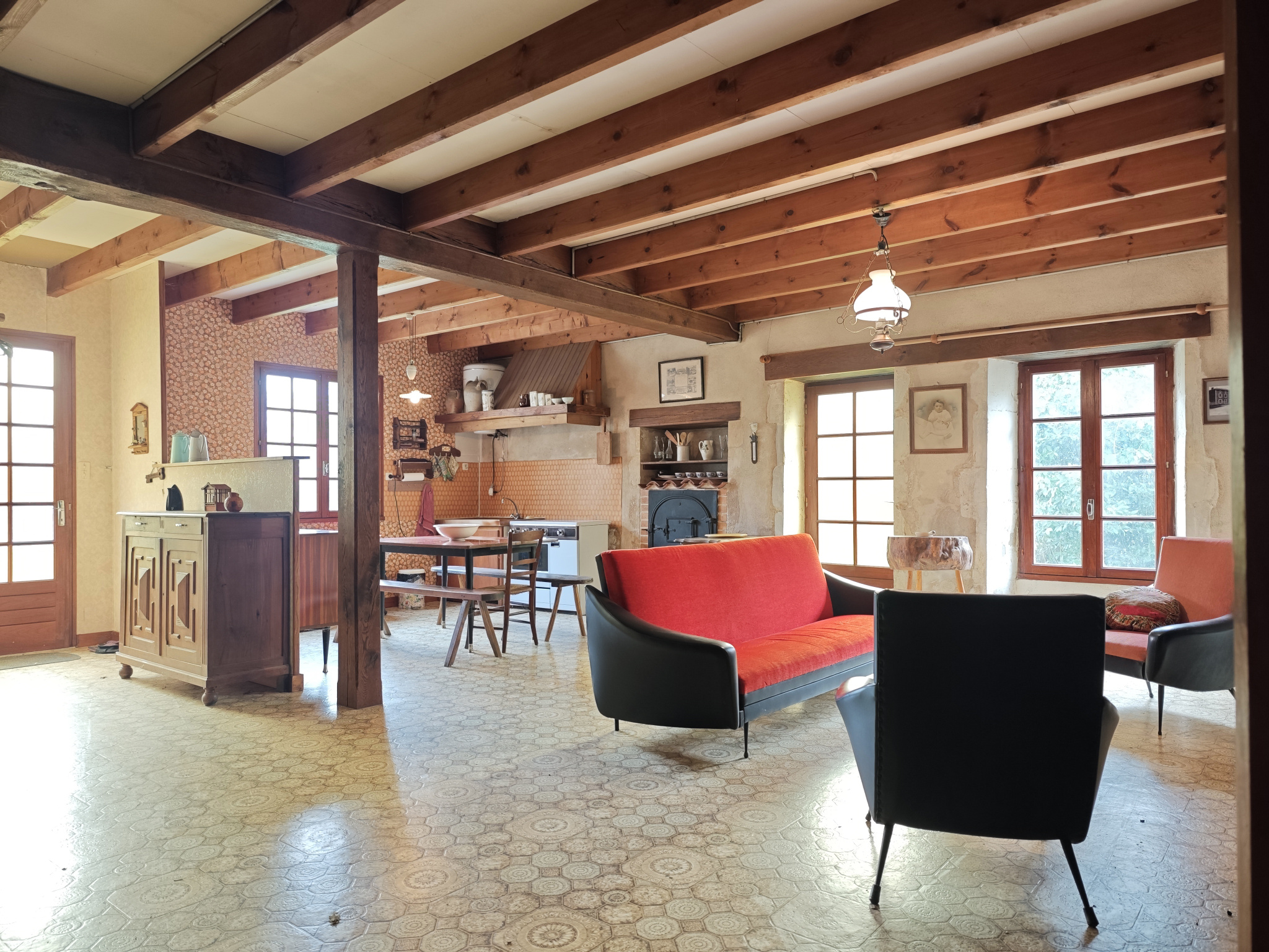 LES ALLEUDS. PICTAVE immo, votre agence immobilière à LEZAY, vous présente en EXCLUSIVITÉ cette maison à rénover, offrant un fort potentiel. Au rez-de-chaussée, vous découvrirez une vaste pièce de vie de plus de 50 m2 avec cheminée et cuisine ouverte, une salle d'eau avec WC et un cellier. À l'étage, le palier dessert trois belles chambres ainsi qu'une pièce équipée d'un WC et d'un lavabo, offrant la possibilité de créer une seconde salle d'eau. Atout majeur : une grange attenante de plus de 200 m2, parfaite pour divers projets d'aménagement. À l'extérieur, profitez d'un jardin partiellement clos de murs et d'un terrain de plus de 8 000 m2, entouré de haies et situé à seulement 500 mètres de la maison. ASSAINISSEMENT CONFORME. Située dans un emplacement privilégié entre Chef-Boutonne (7 km) et Melle (15 min), cette maison est proche de toutes les commodités : commerces, services médicaux et établissements scolaires, du relais petite enfance au lycée