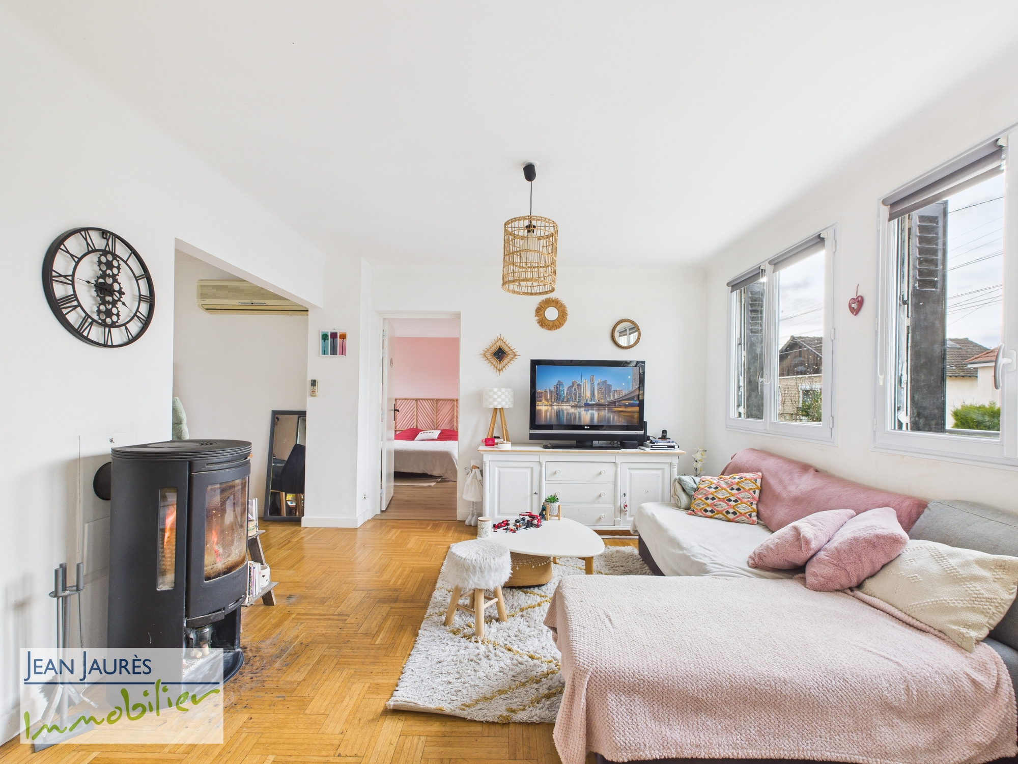 Plusieurs mode de chauffage : poele à bois, climatisation réversible et chauffage d'appoint électrique.