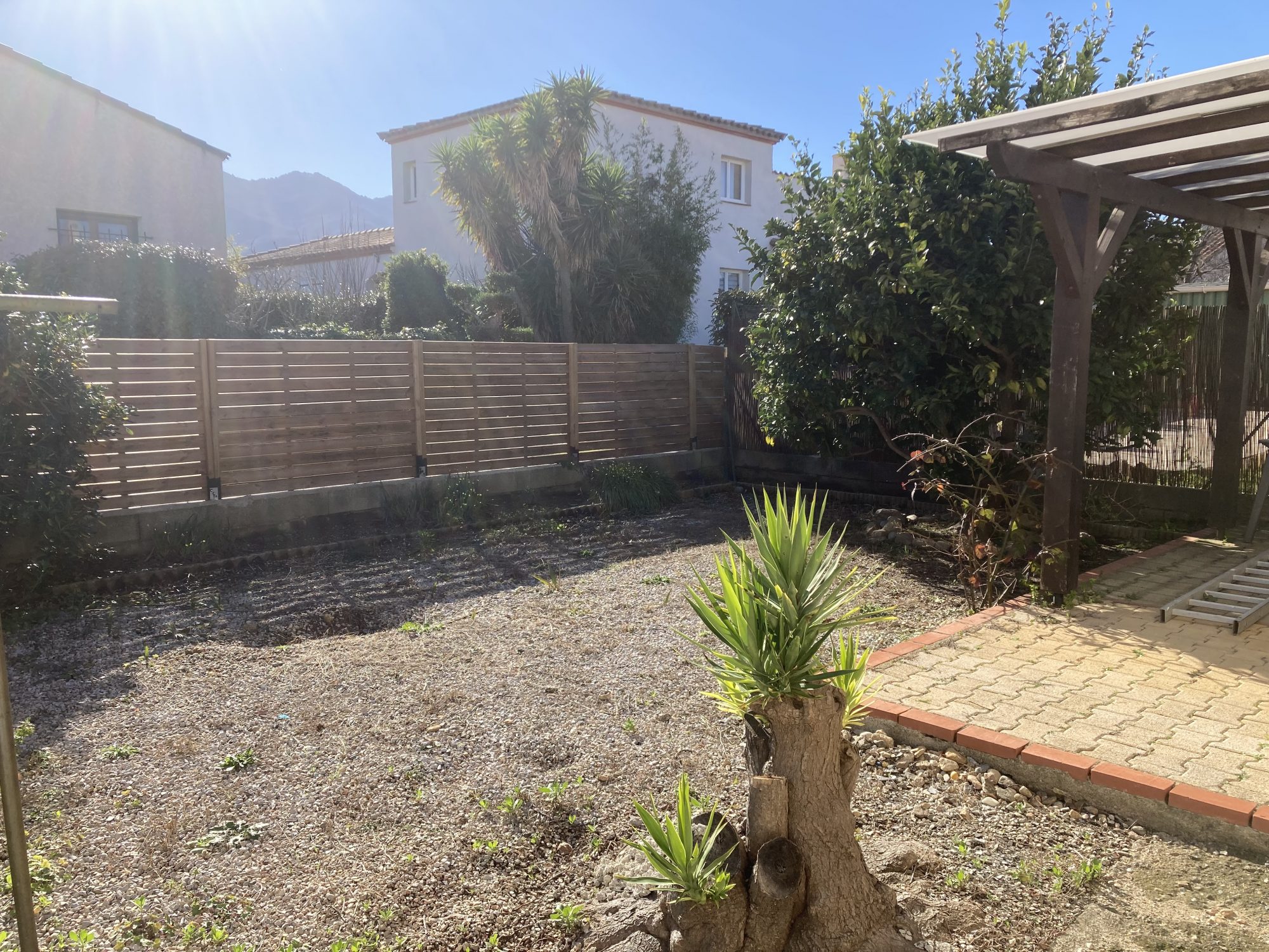 Cette maison 2 faces vous propose un agréable séjour avec climatisation et cheminée insert et une cuisine, tous deux ouvrant sur la terrasse couverte plein sud pour profiter du soleil et de la vue des Albères, 3 chambres, une salle de bain et wc séparé.