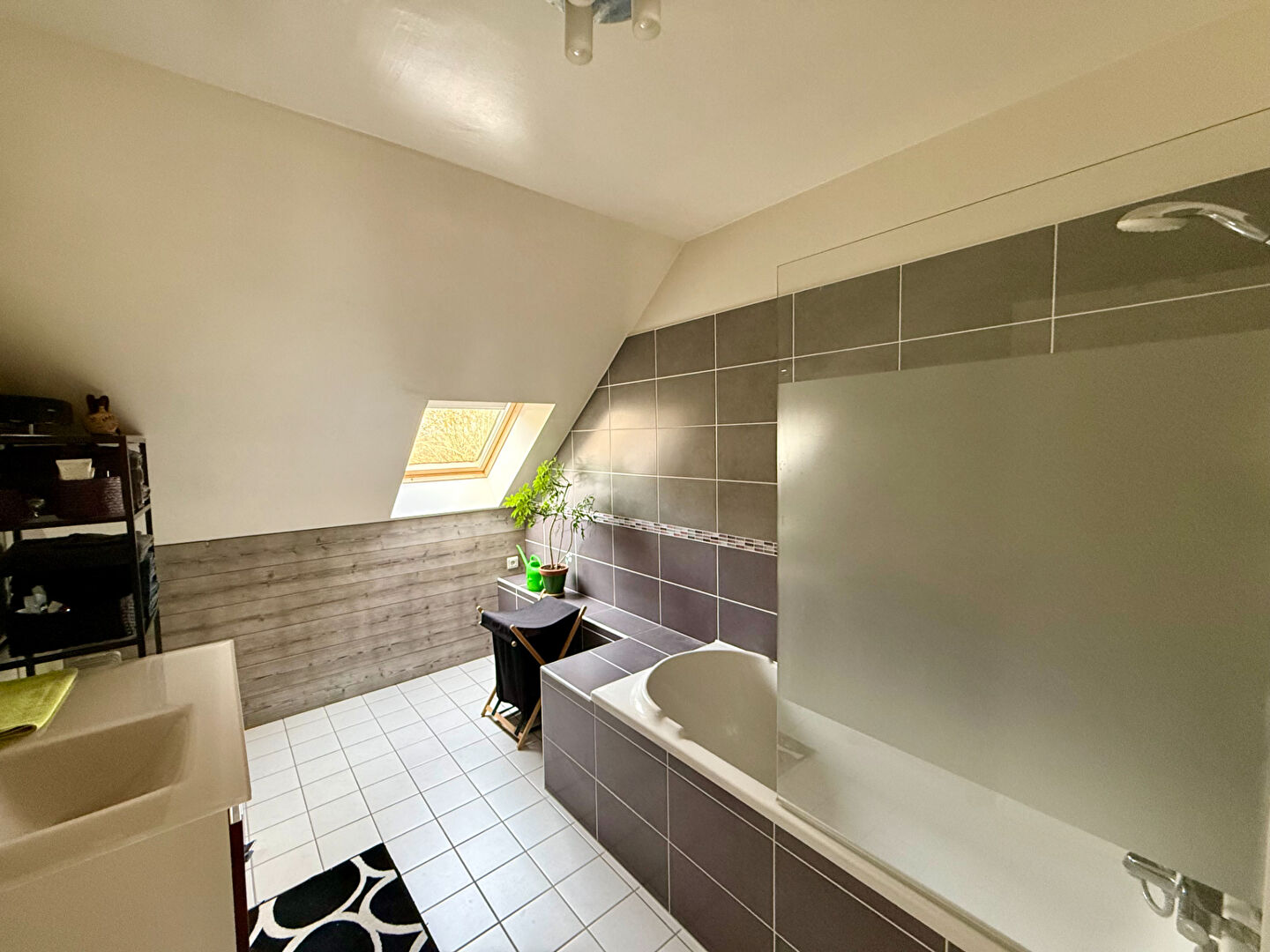 La maison dispose d'un sous-sol total comprenant un garage avec porte motorisée, cave, buanderie et rangements, apportant un réel confort au quotidien.