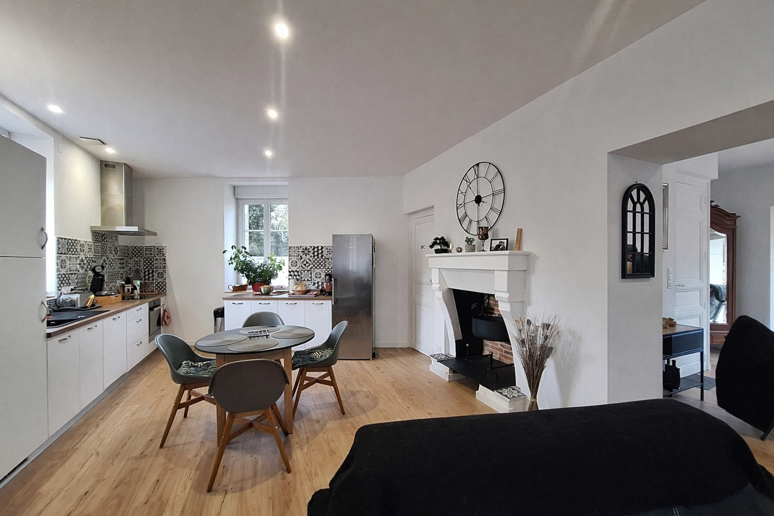 L'intérieur séduit par ses volumes généreux, sa circulation fluide et son atmosphère chaleureuse. La pièce de vie ouverte et lumineuse invite à la convivialité, tandis que les étages accueillent quatre chambres ainsi que des espaces polyvalents, parfaitement adaptés à une vie de famille, une résidence secondaire ou un projet de télétravail.