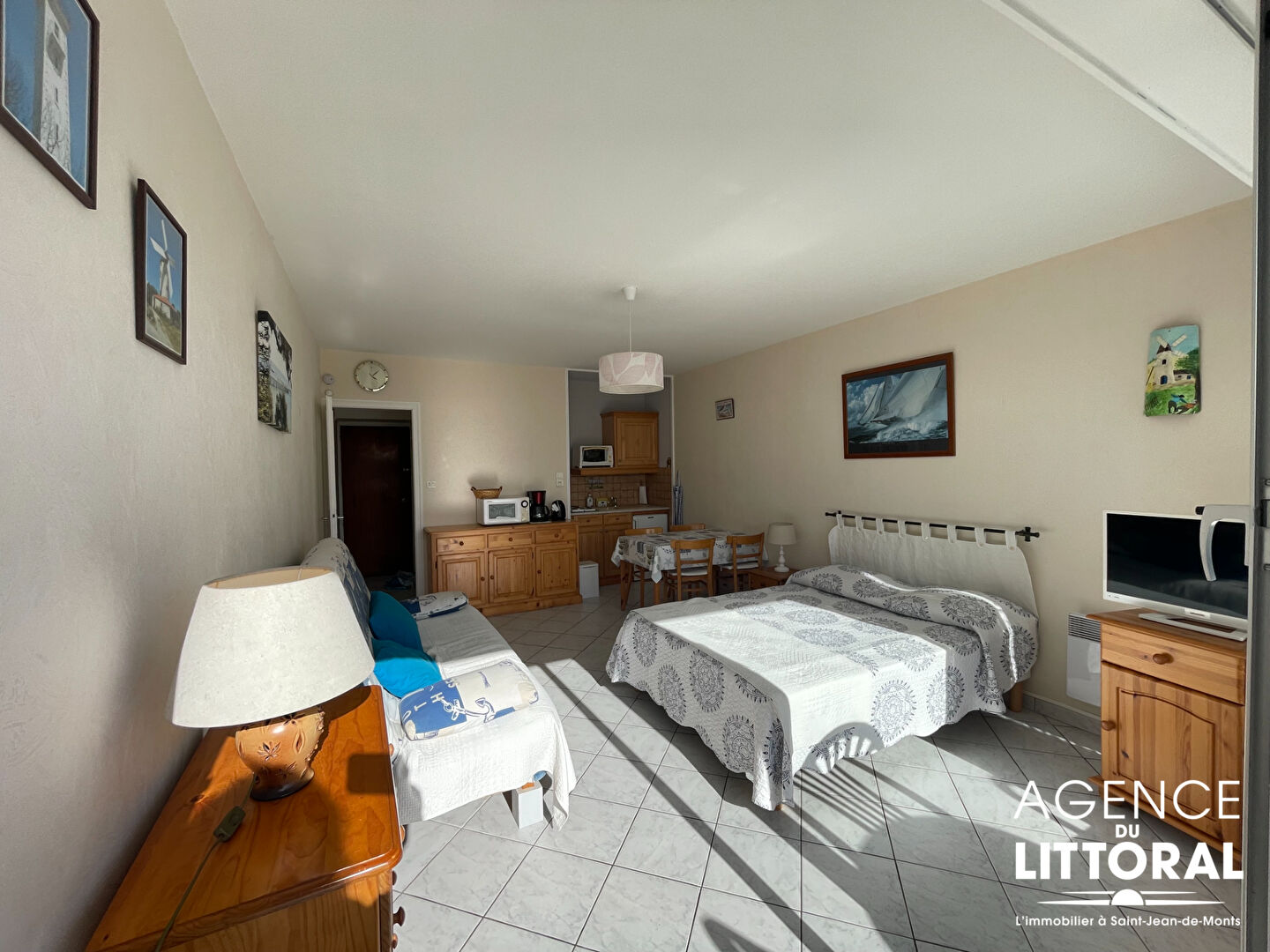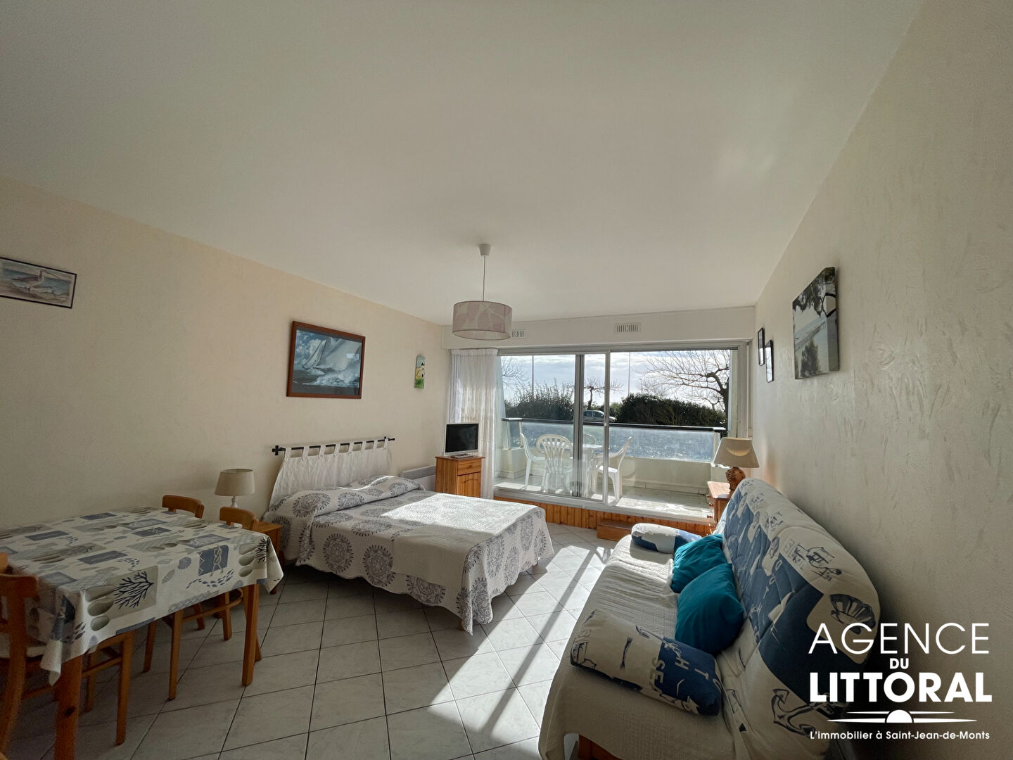 EXCLUSIVITÉ - SAINT JEAN DE MONTS, un appartement situé au rez-de-chaussée d'une résidence avec gardien comprenant : une entrée avec placard, une pièce de vie lumineuse exposition sud/ouest avec cuisine, un spacieux balcon de 7.28 m² une salle d'eau/wc et une place de stationnement privatif.