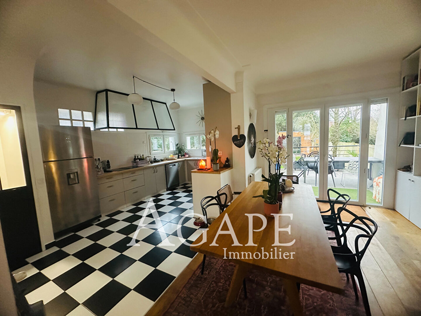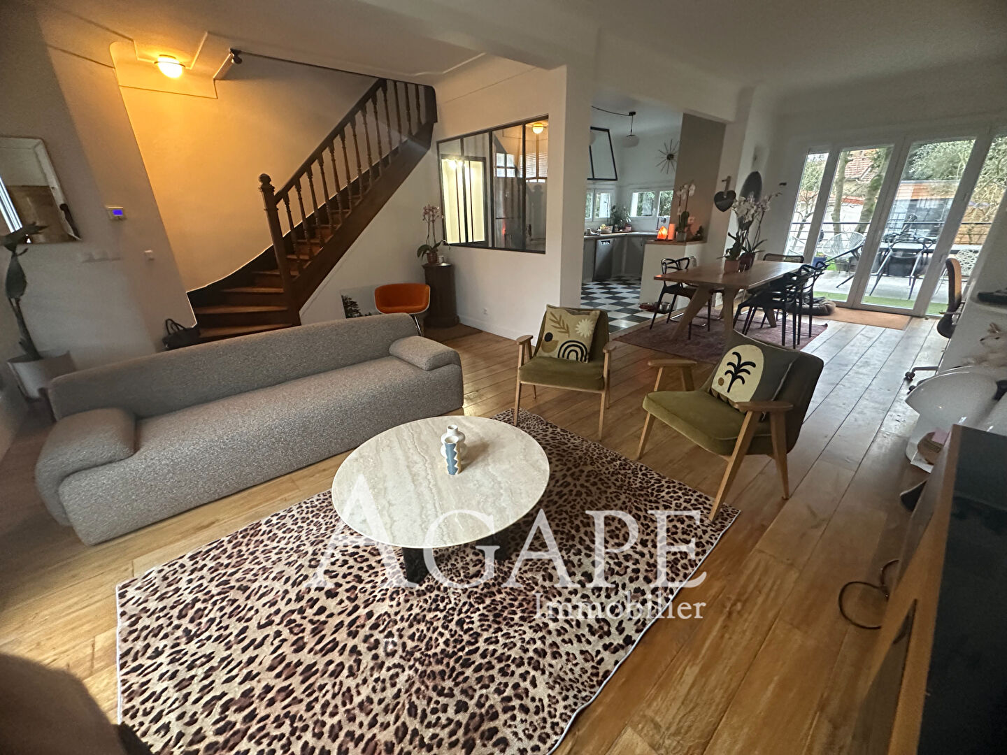 LA VARENNE ST HILAIRE, dans un secteur très recherché, au calme, proche centre-ville, écoles, centres sportifs, commerces-marché et à deux pas de la station RER LA VARENNE, sur un terrain de 424m² arboré, cette maison non-mitoyenne impeccable avec beaucoup de charme, est élevée sur un sous-sol total composé d'une chaufferie, d'une buanderie et de grands espaces de rangement. Elle comprend au RC, une entrée-vestibule avec WC, une cuisine ouverte équipée, un séjour-salle à manger ouvrant de plain-pied sur une terrasse carrelée, sans vis à vis côté jardin. Le 1er étage offre 3 chambres et une belle salle d'eau avec WC. Les combles sont aménagés en une chambre mansardée avec salle d'eau et rangements en sous-pente. Au fond du jardin se trouve une dépendance composée d'un séjour avec cuisine US, salle d'eau avec WC. Une grande salle de sport totalement indépendante complète ce bien. Affaire rare à visiter au plus vite.