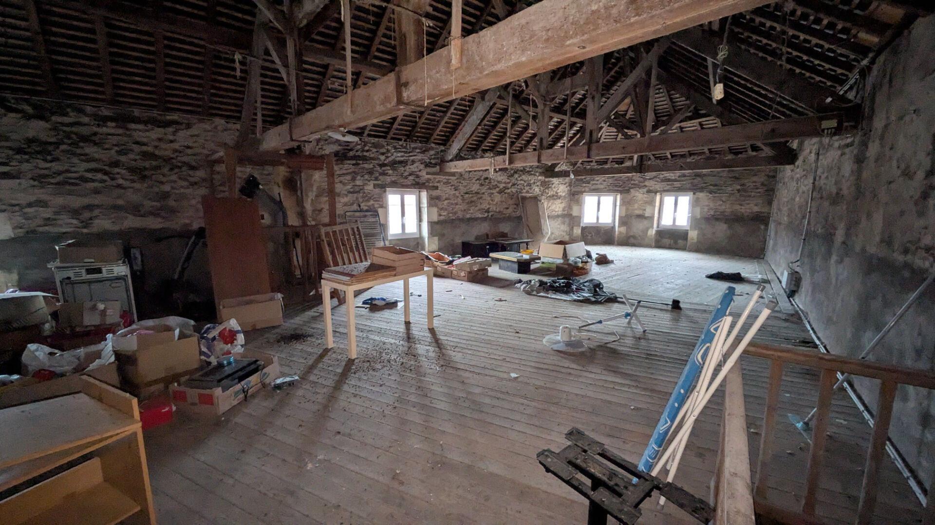 -84 m2 un appartement indépendant, avec grande pièce de vie cuisine-séjour-salon, deux chambres, salle d'eau avec wc. Beau grenier aménageable de 83 m2 et garage.