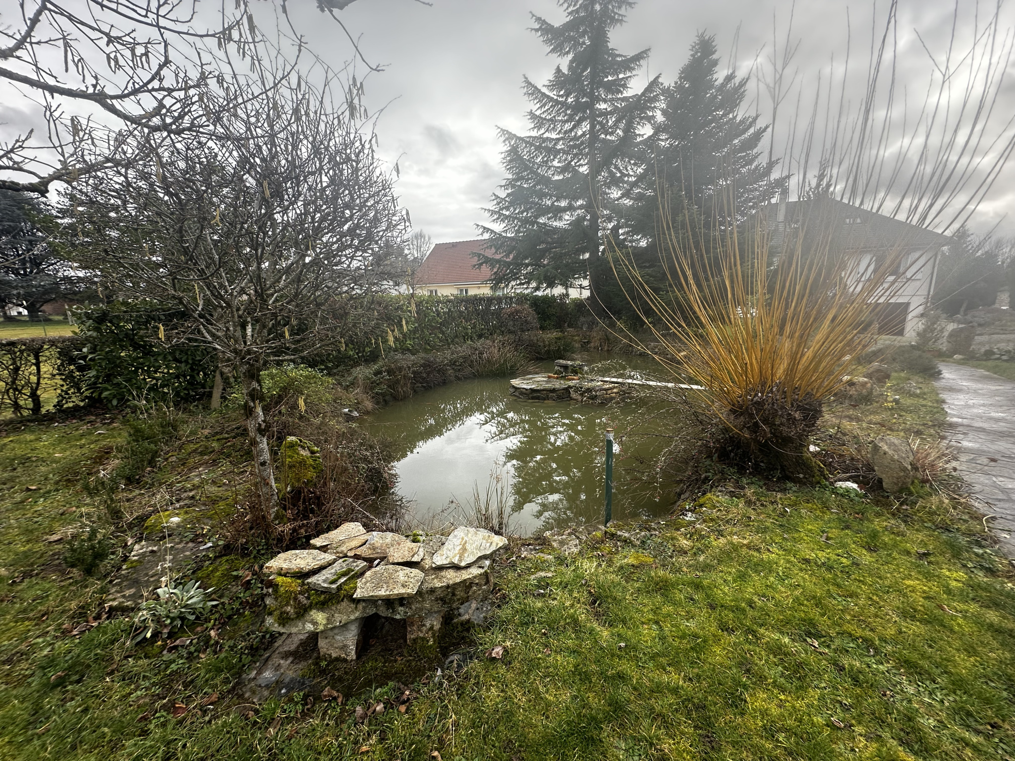 Une mare avec poissons, apportant charme et sérénité