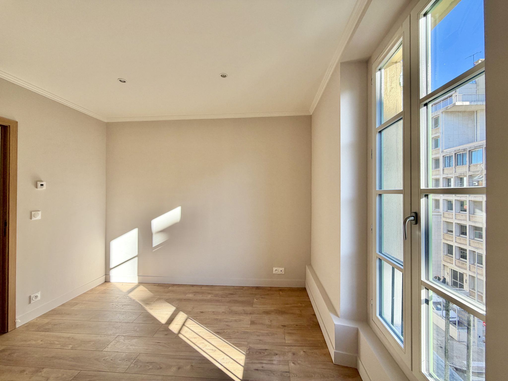Grâce à sa configuration en angle et à son étage, l'appartement bénéficie d'une belle luminosité naturelle.