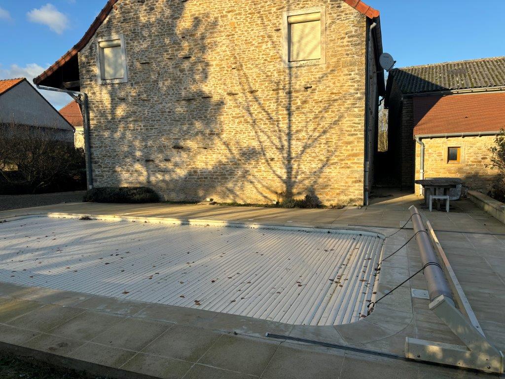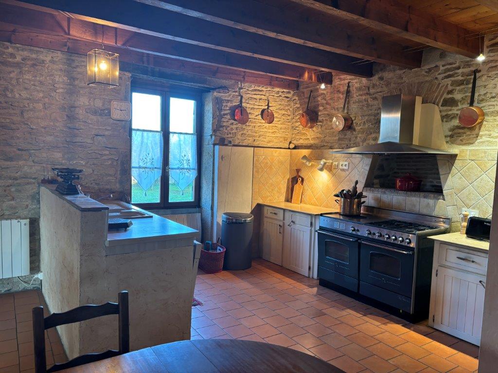 BOURGOGNE COTE CHALONNAISE DANS UN PETIT HAMEAU REMPLI DE CHARME - GRAND CALME - Magnifique maison bourguignonne sur son parc de 1000 m² environ agrémenté d'une piscine chauffée . Cette maison est composée d'une grande pièce à vivre avec cuisine équipée ouverte et une cheminée, d'un grand salon, de quatre chambres, de trois salles de bains/douches, de trois wc. Le tout est élevé sur deux caves dont une voûtée, un atelier, un cellier, un grand garage, un pool house - Portail et volets roulants électriques, Gros œuvre en excellent état, chauffage bois et électricité.. Réf 1643 : prix 276 000 dont honoraires inclus de 4.94 % TTC charge acquéreur - Prix hors honoraires : 263 000 - Montant estimé des dépenses annuelles d'énergie pour un usage standard : entre 4610 et 6290 par an. Prix moyens des énergies indexés sur les années 2021 - 2022- 2023 (abonnements compris) Consommation énergie primaire : 347 kWh/m²/an. Consommation énergie finale : Non communiquée. Logement à consommation énergétique excessive : classe F - Les informations sur les risques auxquels ce bien est exposé sont disponibles sur le site Géorisques