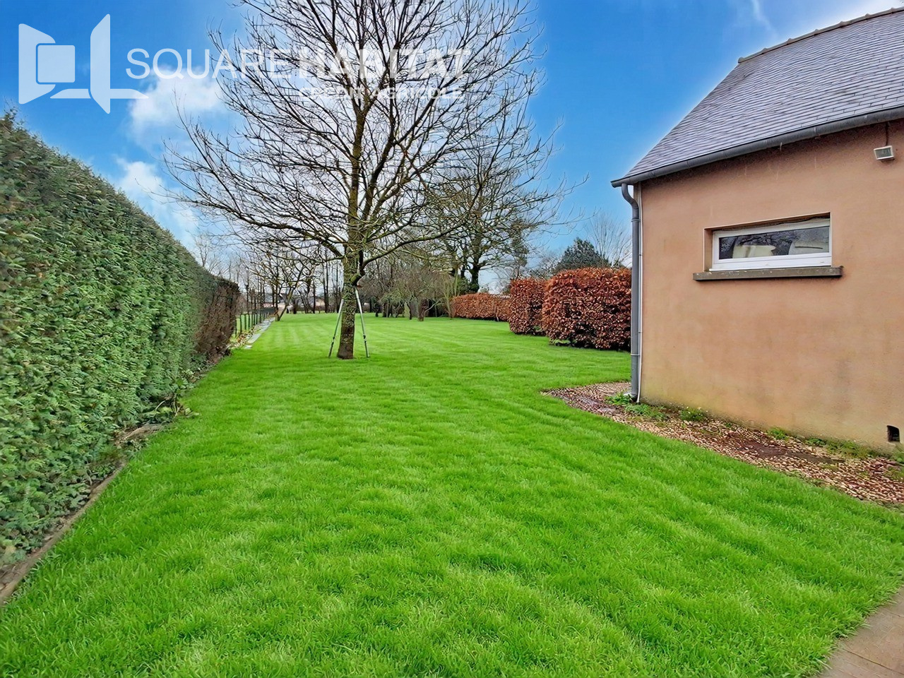 Une grande buanderie complète ce niveau. À l'étage, un couloir dessert trois chambres, dont deux avec placard, une salle de bains et un WC indépendant.