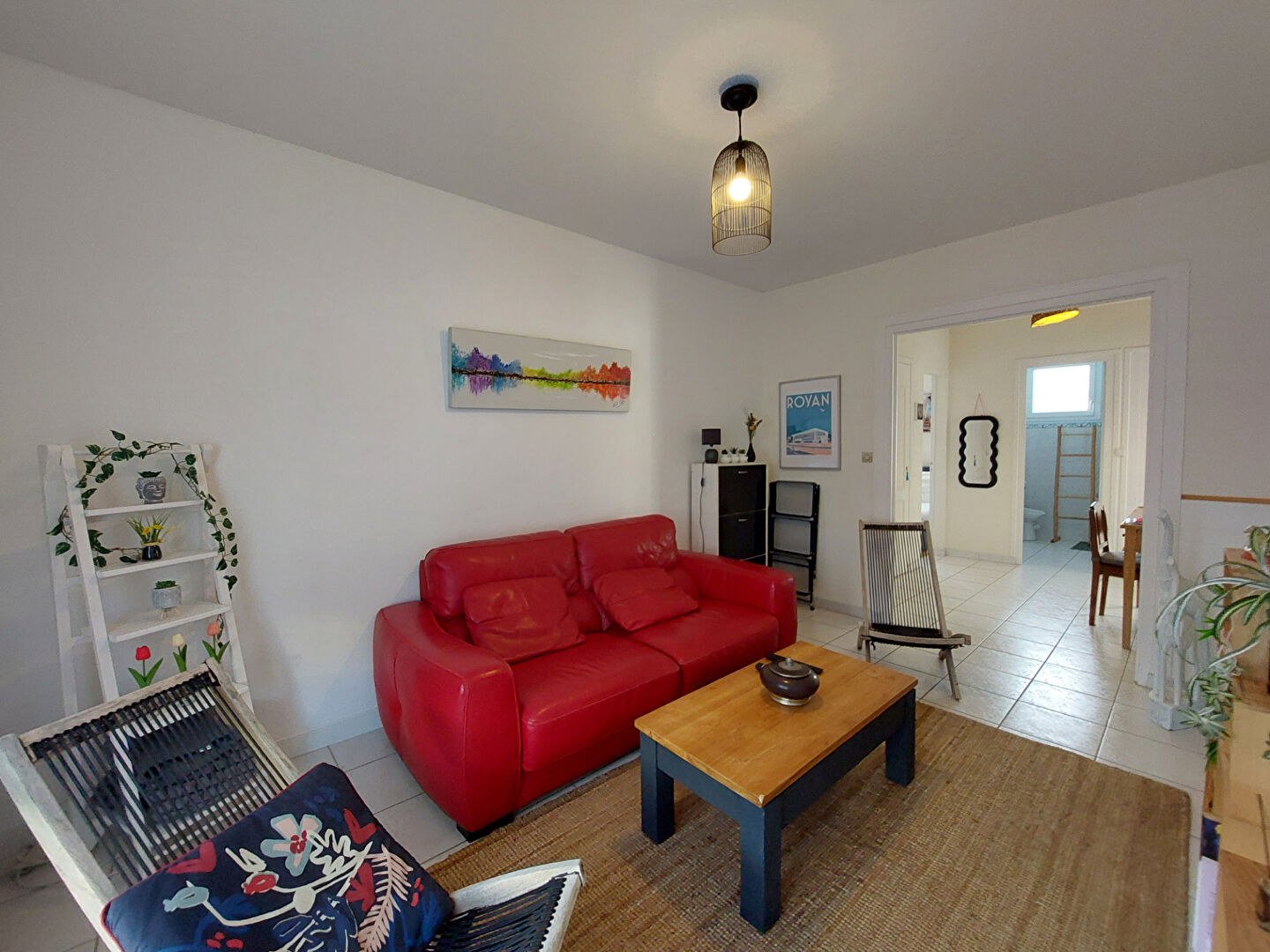 Il comprend : un séjour ,une cuisine aménagée et équipée ouvrant sur une terrasse exposée sud ouest , un petit salon et deux grandes chambres lumineuses avec placards, un wc , une salle d'eau et un cellier .
